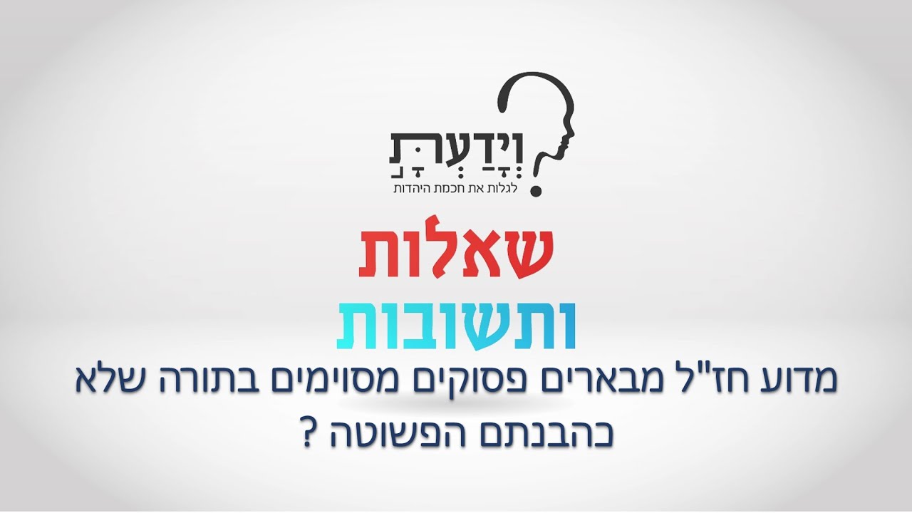 מדוע חז"ל מבארים פסוקים מסוימים בתורה שלא כהבנתם הפשוטה ? עם הרב אהרן לוי