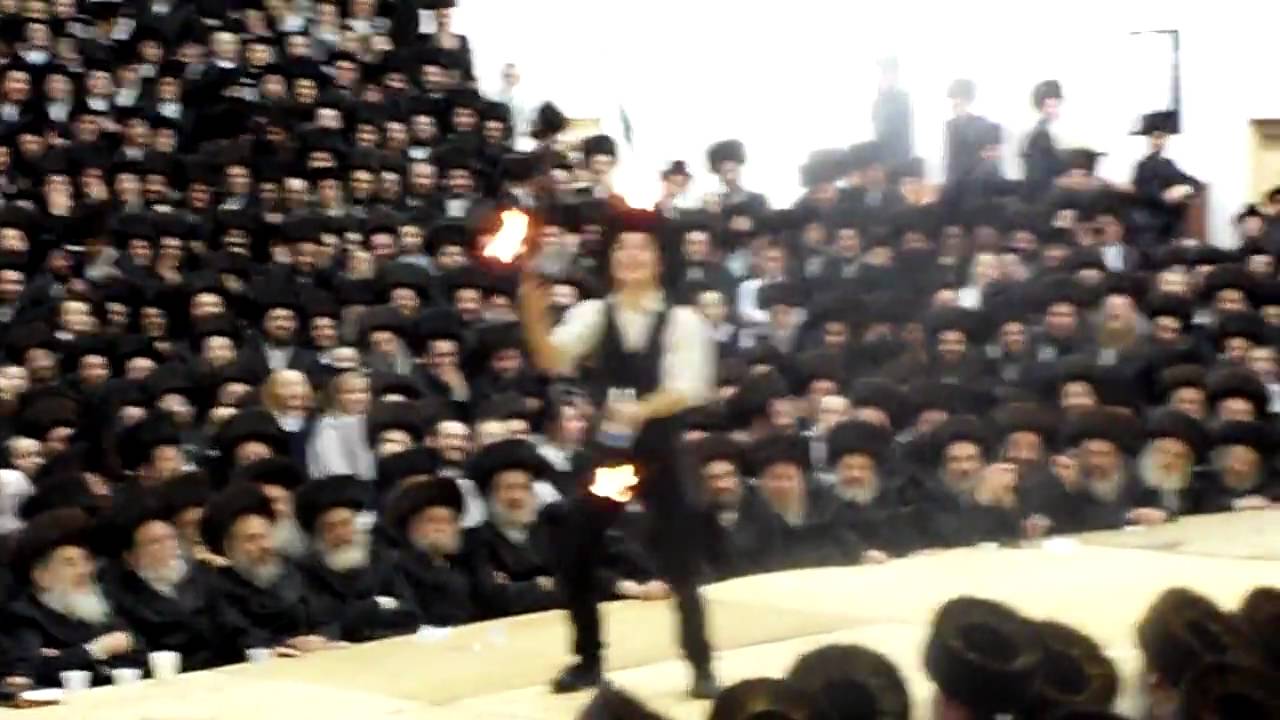 Two Lubavticher Bochurem entertained Thousands of Satmarer chaseidim in Williamsburg Tuesday night, at the Sheva Brochos of the grandchild of the Satmar Rebbe, Rav Ahron Teitelbaum From Kiryas Joel The Bochurem are a pair of highly talented identical twins from France who currently learn in 770 i.e.the Lubavitcher world headquarters and Yeshiva on Eastern Parkway, Brooklyn, NY. The two young men stood on the table and performed for over fifteen minutes while the Rebbe and Thousands of Chaseidim looked on with enjoyment.