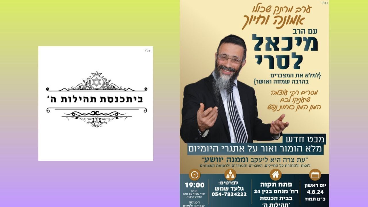 צפייה ישירה ב-YouTubeשידור חי 🟠 הרב מיכאל לסרי - אמונה עם חיוך | LIVE