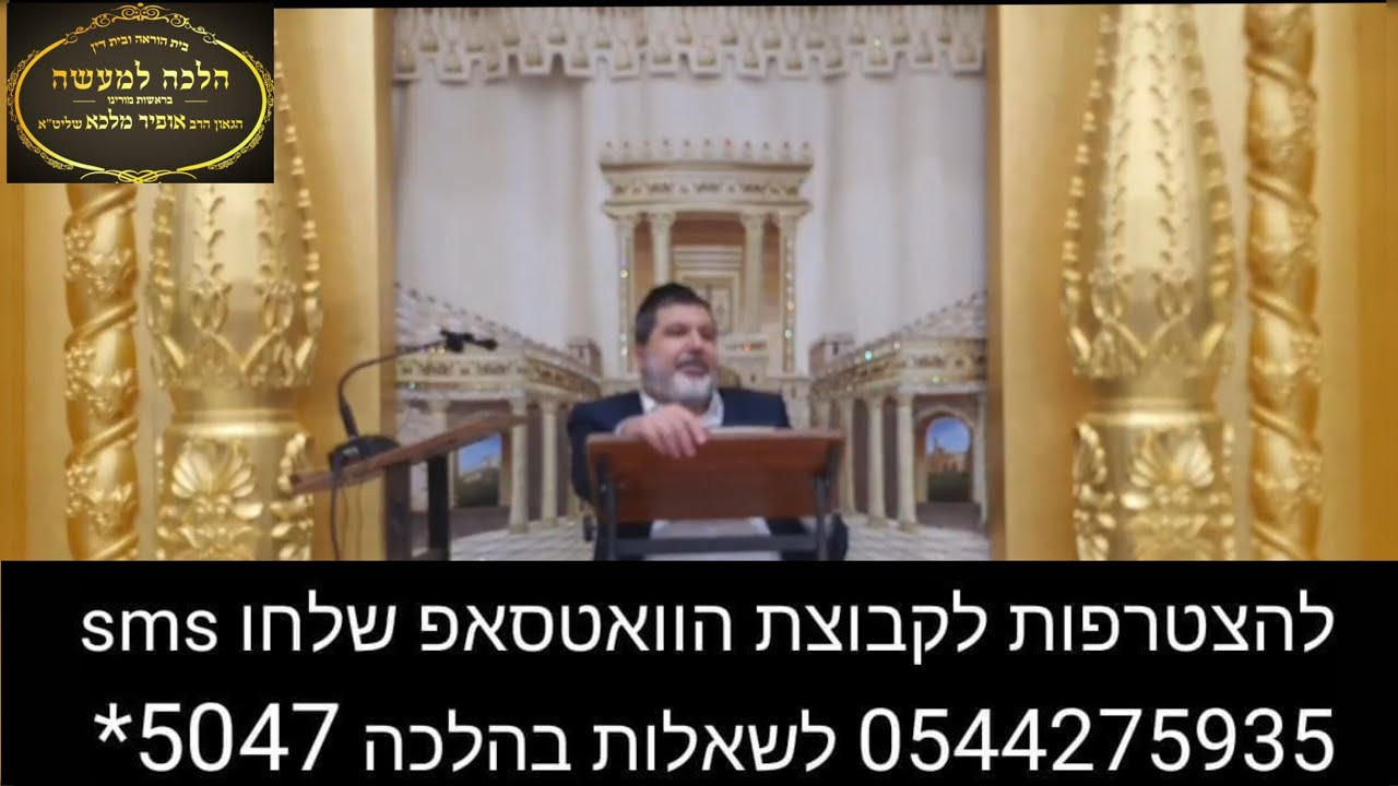 הצטרפו לערוץ שלנו ביוטיוב https://youtube.com/channelUCiT6KgOE1IDJ2XHE23Zk2Cg הצטרפו לשיעורי הרב אופיר מלכא בכול הארץ... ימים ראשון שני ושלישי: ירושלים ישיבת אור החיים 19:50 רחוב עזרא 1 ימי רביעי: 20:45 רחובות בי"הכ יד לשבים רח' שוסיוב 5. 22:10 בני ברק בי"הכ יביע אומר רח' עוזיאל 41 ימי חמישי : 17:45 ירושלים כולל בקרית נוער בית וגן שער 9 יום שישי:(פעם בשבועיים ) קרית אונו מאחורי הקניון בשעה 11:00 קרית גת ביה"כ אור החיים ענתות 3 11:00 אשדוד ביה"כ החיד"א 12:30 שבת: לאחר תפילת שחרית ירושלים בית הכנסת שערי ניסים רחוב שאול המלך 40 מענה הלכתי על ידי הרב שליט"א מדי יום שני בין 17:00-18:45 5047* שלוחה 1 כול יום רביעי בשידור חי שיעורו של הרב אופיר מלכא מיביע אומר בשעה 22:15 !!! קישורים 📲 לצפיה בשידור חי בקול הלשון https://www.kolhalashon.com/New/Live/LiveShiurimTree.aspx?RavID=1810&ShowVideo=True 📲לצפיה בשידור חי ביוטיוב https://www.youtube.com/@הרב.אופיר.מלכא.הלכה.למעשה 📲לצפיה ביוטיוב בטלפון הכשר בחרו מס 71 http://wiki.netfree.link/wiki/ערוצים_ביוטיוב_הפתוחים_בנטפרי