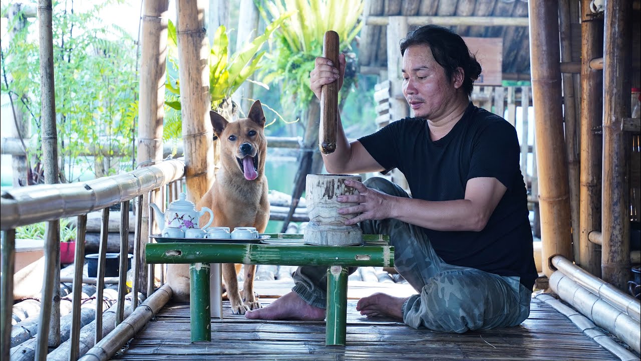 Making Bamboo Table and Wooden Mortar, Rustic Dishes from Nature: River Survival | EP.497