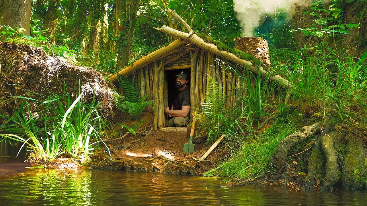 BUSHCRAFT FISHING HOUSE - Complete construction of a shelter to survive in a HIGH FLOOD RISK ZONE!
