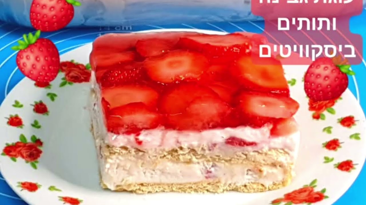בקלי קלות-עוגת ביסקוויטים קרם גבינה תותים וקצפת מעולה- @bkalykalut7 אתר לרכישת מוצרים לבית ולמטבח עשו על הקישור העתק הדבק http://s.click.aliexpress.com/e/cUi5lcbI מתכון רשום בעברית בבלוג שלי לחצו על הקישור- https://kalyklot.blogspot.com/2022/01/strawberry-biscuit-cheesecake-without.html צריך שרוול אחד ביסקוויטים כ-250 גרם החומרים לשים בקערה 400 גרם תותים נקיים לשים 2 כפות סוכר לבן למעוך עם מזלג ולהשאיר בצד לשים במיקסר עם מקצף 2 מיכל שמנת להקצפה 500 גרם 1 שקית אבקת אינסטנט פודינג וניל מעט תמצית וניל 2 כפות סוכר לבן להקציף עד שהקצפת יציבה לאחר מכן להוסיף 1 מיכל גבינה לבנה או גבינת שמנת 250 גרם 1 מיכל שמנת חמוצה באחוזים גבוהים 200 גרם לערבב ממש כמה סיבובים קטנים להוסיף את התותים אבל לא את כל הנוזלים מהתותים לערבב במיקסר מעט להוריד את הקערה מהמיקסר ולערבב עם מרית להכין תבנית פיירקס או אלומיניום 40×40 ס"מ לרפד את תחתית התבנית עם ביסקוויטים לזלף מעט ליקר או ברנדי על הביסקוויטים לא חייבים לא צריך להרטיב את הביסקוויטים הקרם יוציא בהמשך נוזלים וירטיב את הביסקוויטים לשים על הביסקוויטים 3/4 מכמות הקרם וליישר לסדר על הקרם עוד שכבה של ביסקוויטים לזלף מעט ברנדי לא חייבים לשים מעל הביסקוויטים את שאר הקרם ליישר ולכסות בניילון נצמד ולשים במקפיא כשעה בינתיים להכין פרוסות תותים נקיים חתוכים בערך 400 גרם לאחר כשעה כשהעוגה קפואה לסדר את התותים על הקרם הקפוא עכשיו נכין ג'ילי תות קודם לשים בסיר מים רותחים לפי הוראות היצרן על הקופסה ולאחר מכן להוסיף את אבקת הג'ילי תות 1 קופסה כ- 88 גרם לערבב היטב להבריש מיד עם מברשת על התותים ועל הקרם לאחר מכן לשפוך את הג'לי על כל העוגה לשים במקרר ליציבות הג'ילי לאחר מכן לכסות היטב ולשמור במקרר