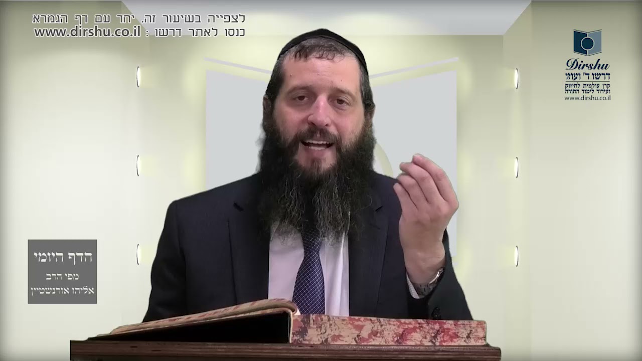 דף היומי - שיעורי הדף היומי בגמרא תלמוד בבלי מסכת ביצה מבית "דרשו" עם הרב אליהו אורנשטיין שליט"א, הדף יומי קצר וישיבתי לשיעורים נוספים באתר דרשו: http://www.dirshu.co.il/