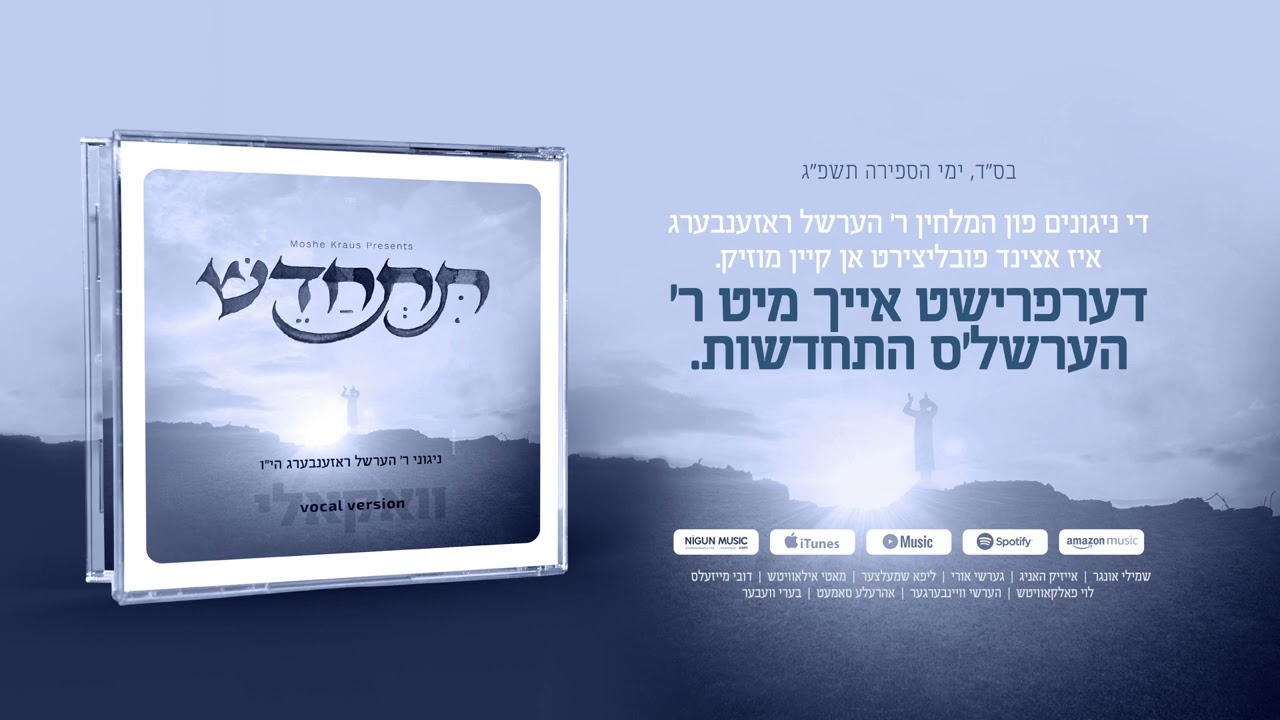 Moshe Kraus - MK Studios Presents TISCHADESH - Vocal Version, for Sefira! Ten beautiful new songs composed by R’ Hershel Rosenberg, featuring top Chasidic singers! When R’ Hershel first came to Moshy Kraus asking to record his compositions for his own private collection, there was never an intention for this music to be released to the world. That was until the songs were listened to and first recorded at the MK Studio. It was at that point that Moshy knew that he was on to something much larger than R’ Hershel had in mind. “This music will not stay hidden in your archives; the world must hear this” was Moshe’s reaction. And so, after a 3-year journey of hard work, the vision of being heard by the world is here! Enjoy the heartwarming, original songs of R’ Hershel filled with hope, chizuk and yearning! Produced by: Moshe Kraus, MK Studios Songs Composed by R’ Hershel Rosenberg Songs Performed By: Shmueli Ungar, Isaac Honig, Gershi Uri, Lipa Schmeltzer, Moti Ilowitz, Dovy Meisels, Levy Falkowitz, Hershy Weinberger, Ahrele Samet and Beri Weber.