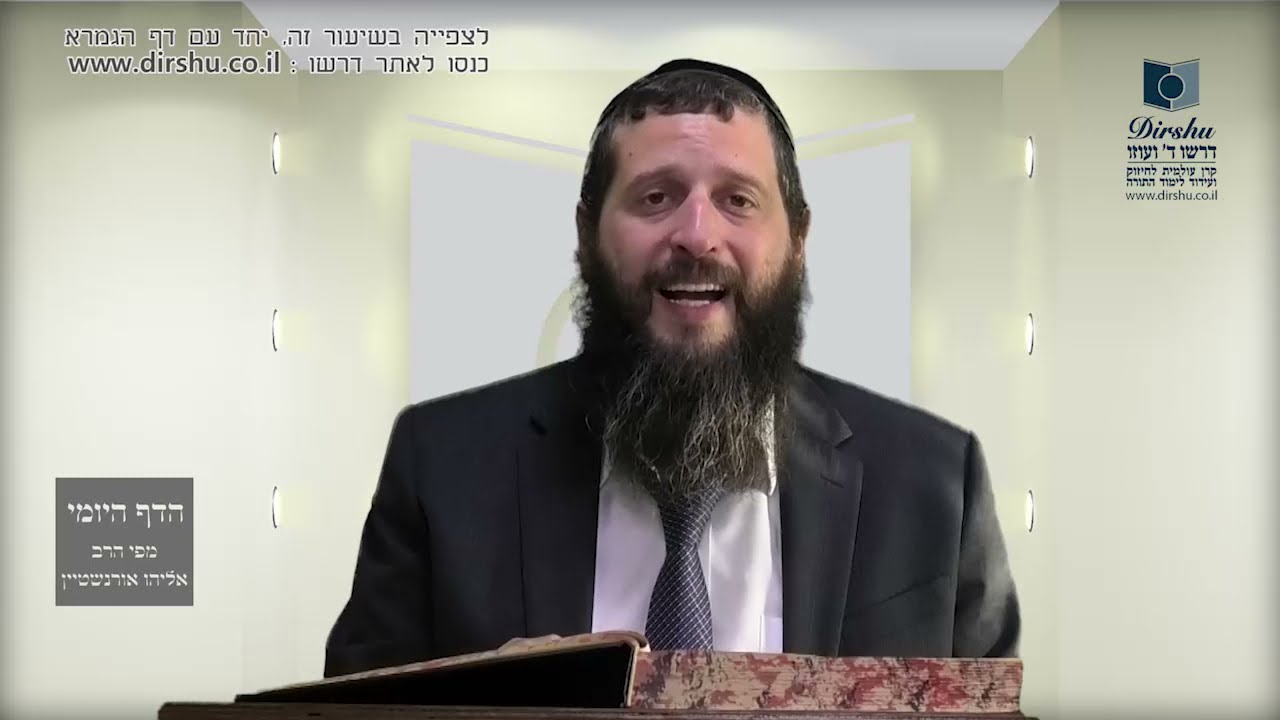 דף היומי - שיעורי הדף היומי בגמרא תלמוד בבלי מסכת ביצה מבית "דרשו" עם הרב אליהו אורנשטיין שליט"א, הדף יומי קצר וישיבתי לשיעורים נוספים באתר דרשו: http://www.dirshu.co.il/