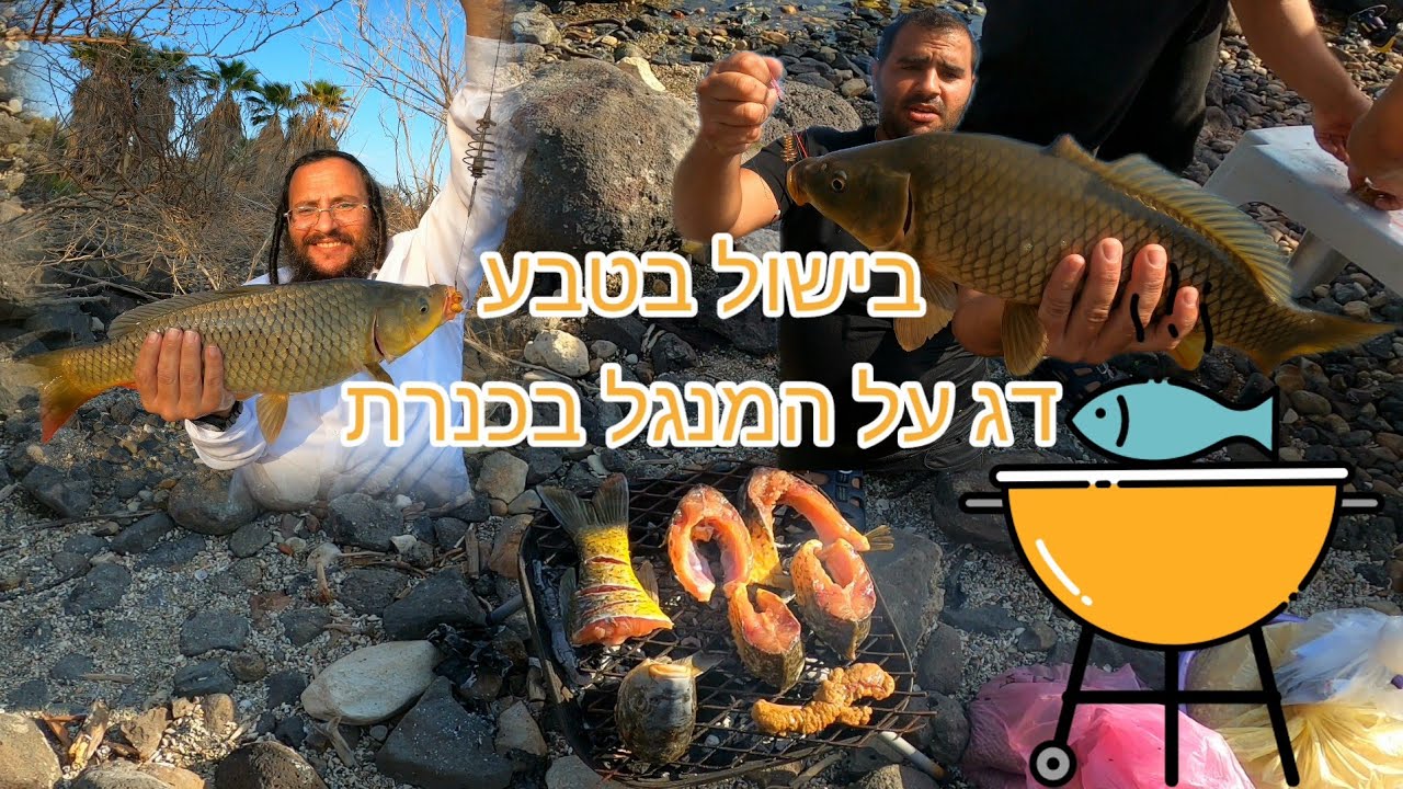 סטייק קרפיון על המנגל בישול דג בטבע דיג קרפיונים בכנרת .Cooking fish in nature