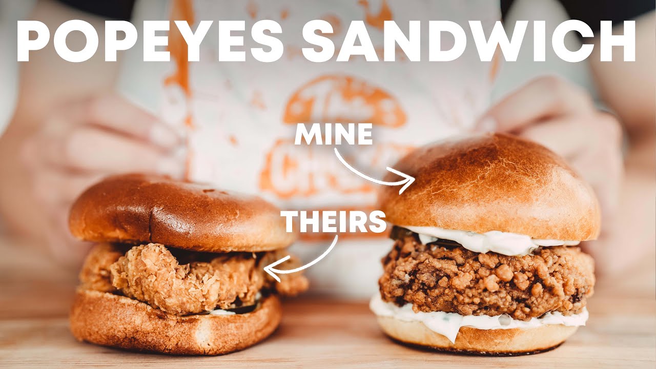 Which is better: Popeyes or Chick-fil-A? Vote in the comments down below! Buns 2 tbsp bread flour 1/4 cup whole milk 2 tbsp water 3/4 cup whole milk (warm) 1 tbsp active dry yeast 2 1/2 tbsp sugar 3 1/4 cups bread flour 1 1/2 tsp kosher salt 1 large egg 1 egg yolk 3 tbsp butter Egg wash Crispy Chicken 3 boneless skinless chicken breasts 1 cup buttermilk 1 cup pickle juice 1 tsp paprika 1 tsp garlic powder 1 tsp onion powder 1 tsp pepper 1 tsp salt 1 cup potato/corn starch 1/2 cup all-purpose flour Frying oil Pickles (for topping) Mayo 1 cup mayo 2 tbsp chives 1 tsp lemon zest 1 tsp salt Subscribe to help us become the #1 food channel :) ╔═╦╗╔╦╗╔═╦═╦╦╦╦╗╔═╗ ║╚╣║║║╚╣╚╣╔╣╔╣║╚╣═╣ ╠╗║╚╝║║╠╗║╚╣║║║║║═╣ ╚═╩══╩═╩═╩═╩╝╚╩═╩═╝ Follow for more: https://www.youtube.com/@NickDiGiovanni https://www.youtube.com/@NicksKitchen https://www.instagram.com/nick.digiovanni https://www.facebook.com/nick.digiovanni https://www.tiktok.com/@nick.digiovanni