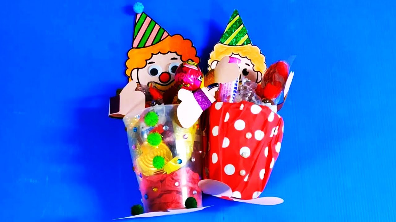 הכנת משלוח מנות ליצן. יצירה עם דף, כוס צבעים וקישוטים. יצירת עשה זאת בעצמך, משלוח מנות יפה ומיוחד. דף הליצן להדפסה: http://www.keflanu.com/item.aspx?id=1438