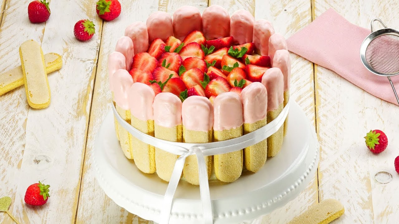 Thanks for watching and don't forget to subscribe for a first-hand look at all our best recipes and cooking hacks: https://www.youtube.com/scrumdiddlyumptious?sub_confirmation=1 You'll Need: For the filling: - 1½ cups mascarpone - ⅓ cup sugar - 1 tbsp lemon juice - 1 tsp vanilla flavoring - 5 tbsp warm milk - 3 sheets gelatin - 5 fl oz whipping cream - 7 oz strawberries, chopped For the sponge cake base: - 2 eggs - ⅖ cup sugar - ⅖ cup flour - ⅓ cup corn starch - 1 tbsp baking powder In addition: - 2 fl oz cold espresso - 3½ cups whipped cream For the decoration: - white couverture chocolate - red food coloring - 18 - 19 ladyfingers - 3.5 oz strawberries, chopped in half - some mint leaves Here's How: 1.Beat the mascarpone, sugar, lemon juice and vanilla flavoring into a cream. Dissolve the already softened gelatin in the milk while stirring. Then stir the milk into the mascarpone mix before folding in the whipped cream. Finally, fold in the strawberries. 2. To make the sponge cake base, first beat the eggs and sugar together until they are frothy. Next, add the rest of the ingredients, then pour the mixture into a small springform pan and spread it out flat. Then bake for 20 minutes at 390°F. 3. Remove the cooled sponge base from the pan and cut it into three equally thick layers. Separate the layers and dab the bottom one with some espresso. Then spread half the mascarpone mix on to the sponge. Repeat all these steps with the second layer of sponge. Place the third layer on top of the rest of the cream and then dab it with espresso too. Then leave the cake to cool for 30 minutes. 4. For the first part of the decoration, cover the cake evenly with more whipped cream that has been beaten until it is stiff. 5. Melt the couverture chocolate over a waterbath and dye it with some food coloring to produce a baby pink color. Dip the ladyfingers about a quarter of the way into the chocolate and then let it dry. For this, you can stand the ladyfingers in cups, glasses or even an ice cube tray in the fridge. Place the biscuits with the hardened chocolate around the edge of the cake, until it is completely covered. Then decorate the top with strawberries and a little mint. You can also find the full instructions on our website: http://www.scrumdiddlyumptious.com/strawberry-tiramisu-cake/