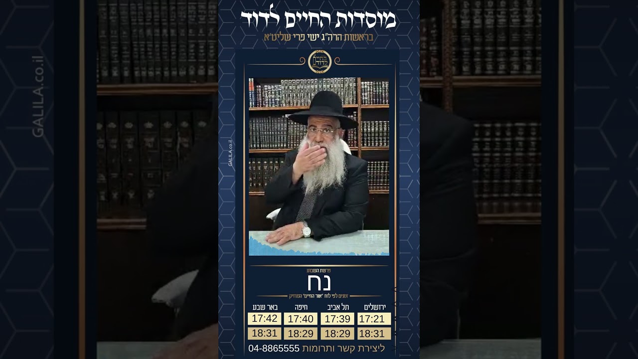 שיעורים קבועים בישיבה (מועבר גם בשידור חי): שלישי ב- 21:00 | שישי ב- 09:00 הרב שי פרי בוואצאפ ◄ https://chat.whatsapp.com/HfHI88uNIyT3OJQMfl2KJ6 דף הפייסבוק ◄ https://www.facebook.com/rabbishaiperry קו התוכן ◄ 04-8001500