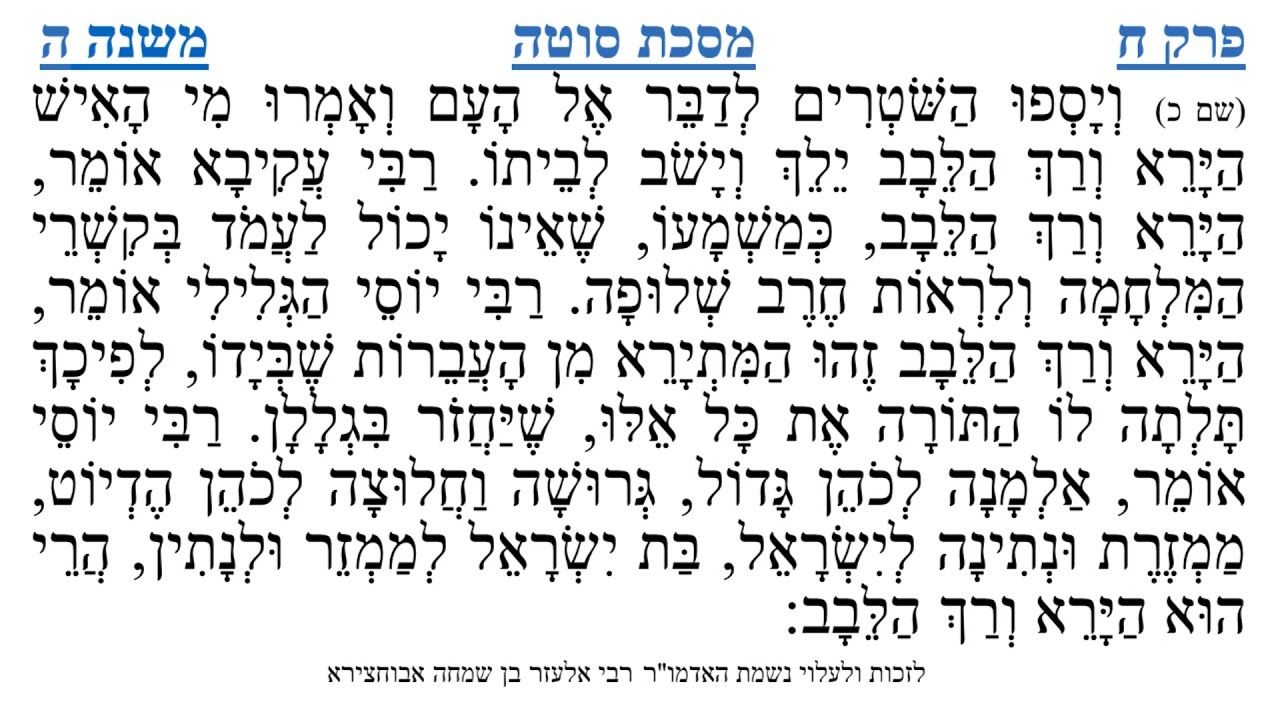 צפייה ישירה ב-YouTubeמסכת סוטה פרק ח משנה ה
