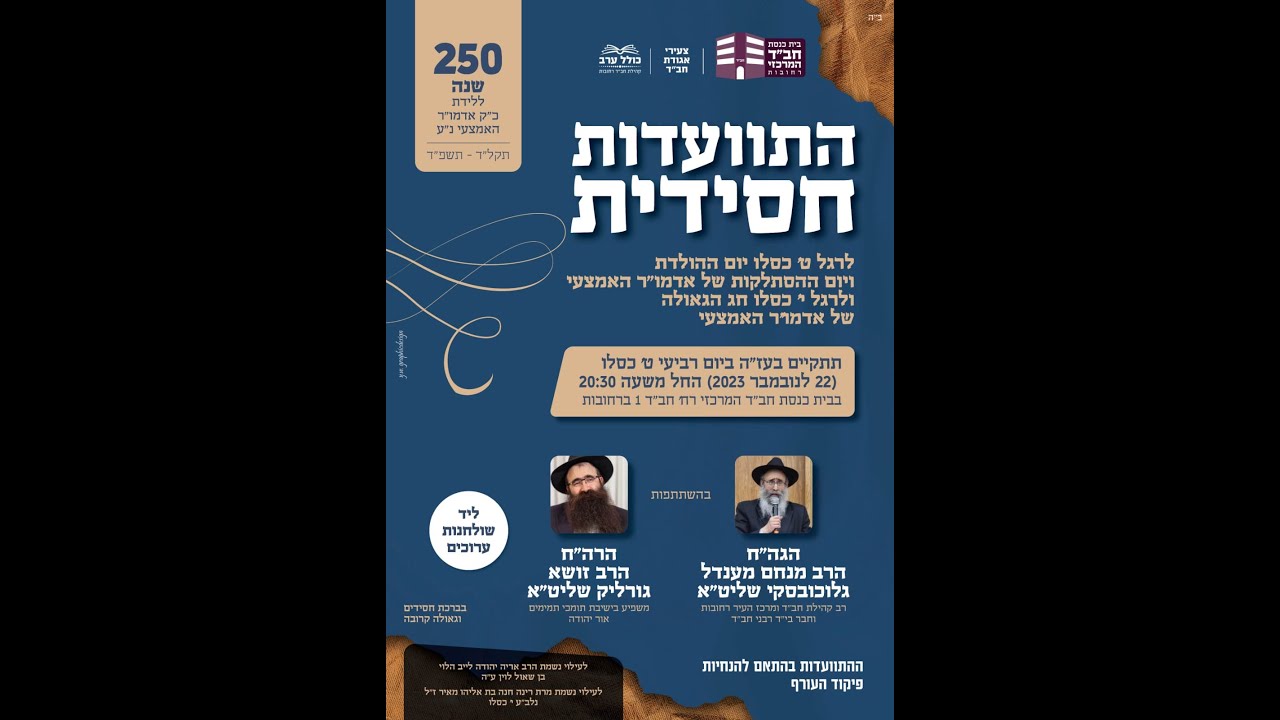 ט' כסלו - בית כנסת מרכזי חבד - רחובות - תשפד
