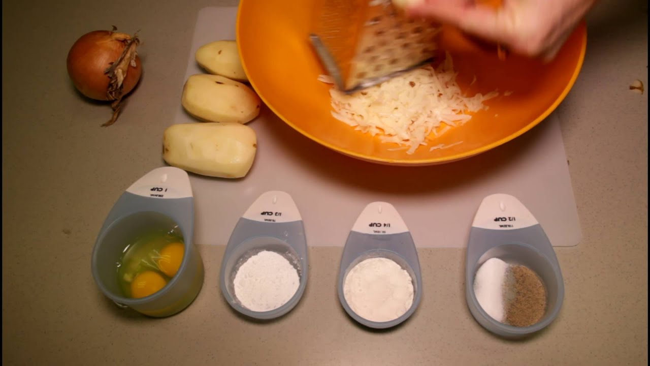 An easy recipe for delicious latkes based on the Maccabeats song "Latke Recipe." Perfect for your Hanukkah party and all year round! Watch the music video for "Latke Recipe" here: https://www.youtube.com/watch?v=fg51la8Yayc Ingredients: 4 potatoes, 1 onion, salt, pepper, 1 Tbsp flour, 1 pinch of baking powder, 2 eggs, oil for frying, apple sauce - peel and grate potatoes - shred onion - add rest of ingredients and mix well - heat oil in skillet on medium heat - press spoonfuls of mixture onto skillet - fry each side until golden brown - serve and enjoy - best served with applesauce! Produced by Ari Lewis Special thanks: the YM&YWHA of Washington Heights & Inwood, Cyndi Rand ---------------------------------------------------------------------------------- Bandcamp: https://maccabeats.bandcamp.com/ Our new EP, "A Maccabeats Hanukkah" is available now! iTunes: https://itunes.apple.com/us/album/a-maccabeats-hanukkah/id1055932520 CDBaby: http://www.cdbaby.com/cd/maccabeats17 Amazon (CD): http://www.amazon.com/Maccabeats-Hanukkah/dp/B017MFNMG4/ref=sr_1_1?ie=UTF8&qid=1448381443&sr=8-1&keywords=maccabeats+hanukkah Jewish Jukebox (CD): http://www.jewishjukebox.com/products/chanukah_music/2451.asp This and all Maccabeats music is recorded a cappella. http://www.maccabeats.com Bookings: booking@maccabeats.com Tour dates: http://www.maccabeats.com/events/tour-dates/ Facebook: http://www.facebook.com/maccabeats Twitter: http://www.twitter.com/maccabeats Instagram: http://www.instagram.com/maccabeats
