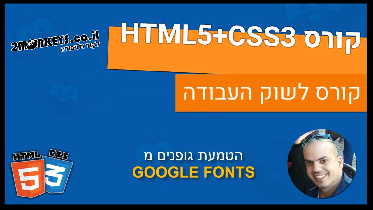 קורס HTML 5 CSS - הטמעת גופני GOOGLE FONTS