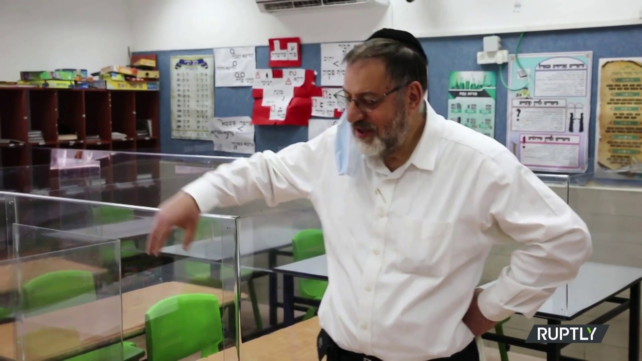 An elementary school in #BneiBrak, east of Tel Aviv, has begun its preparations for the return of pupils to school after as Israel contemplates reopening some schools on May 3, footage from Tuesday shows. While the Israeli government is discussing how lessons will resume, the principal and staff at Boston Torah Talmud School have placed plastic partitions around desks to separate children and reduce the risks of infections. Principal Nathan Foxbromer explained the partitions were the best solution the school could offer to allow students to make a safe return to school. "Those partitions are made of polycarbonate, they protect students from air passing from one to another and it also prevents them from touching each other," he said. Teachers would also be protected while giving their lessons, he added. According to figures released by the Johns Hopkins University, Israel has 15,589 confirmed cases and 208 deaths from COVID-19 as of Tuesday.