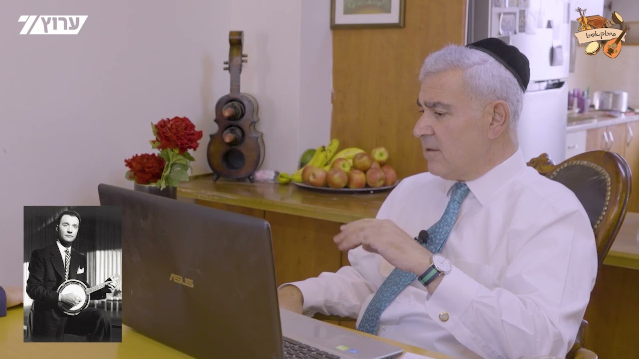 משה חבושה מפצח את השיר אל כרנך מלחניו של מחמד עבדל והאב , עם המראיין עוזיאל סבתו