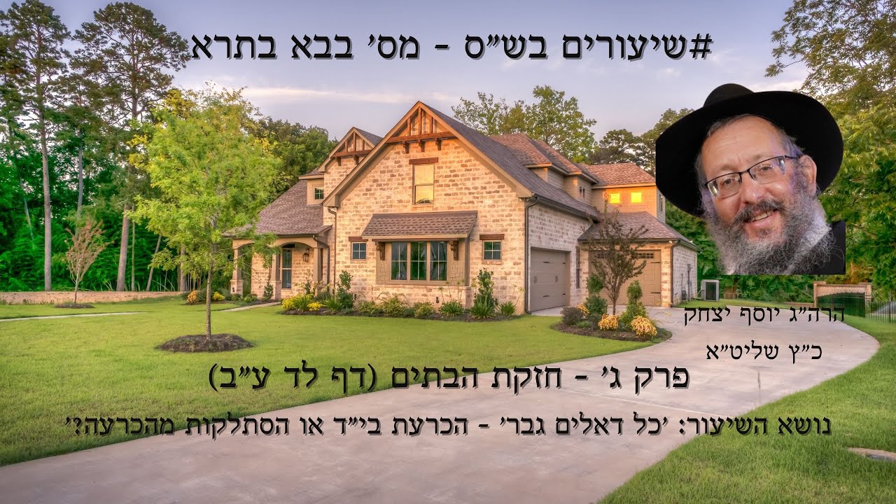 מראי מקומות: גמ' בבא בתרא לד,ב. רא"ש, חת"ס, חידושי רבי נחום פרצוביץ', אחרונים. השיעור מתקיים מידי מוצאי שבת בבית כנסת חב"ד המרכזי רחובות בשעה 20:15 פרויקט חדש! הלכה בהליכה: לומדים את כל ההלכות הנצרכות תוך כדי תנועה עם סרטון יומי קצר ופרקטי, להצטרפות לקבוצה השקטה: https://chat.whatsapp.com/JXChGltTQEhDZTVMSxDFbq