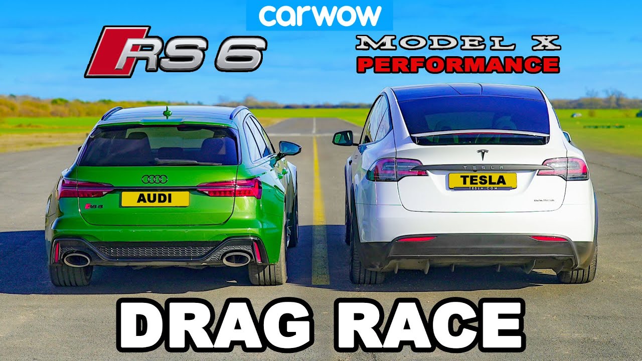Need help buying your next car? Click the following link and my team and I will help you choose your ideal car at a fair price - from Mat Watson! http://bit.ly/-Help-Me-carwow ............................................................. Thanks to Richard for bringing along his Tesla - https://www.youtube.com/c/RSymonsLtd It’s time for an almighty petrol vs electric drag race! Mat’s in his long-term RS6 (one of the last videos he filmed with it 😭) and he’s going up against the Tesla Model X Performance! Now you older carwow fans will know this isn’t our first drag race with a Model X, and you’ll know just how quick they can be… And this one’s no exception! Powered by dual electric motors, it can produce 778hp and a whopping 1,140Nm of torque! It’s pretty heavy though, weighing in at 2,485kg. So what chance does the RS6 have? Well it’s certainly not low on power, with a 4-litre twin-turbo V8 packed under the bonnet to produce 600hp & 800Nm! And even though it’s a big performance estate, it’s still a whole lot lighter than the Tesla - almost 400kg lighter! So what do you think, will the electric power of the Model X propel it to victory? There’s only one way to find out… LET’S RACE! ............................................................. Instagram – http://www.instagram.com/carwow Tiktok - https://www.tiktok.com/@carwow Facebook – http://www.facebook.com/carwowuk Twitter – http://www.twitter.com/carwowuk Sign Up to our Newsletter – http://bit.ly/carwow-Newsletter Awkward haggling is a thing of the past with carwow. Choose your perfect car with our configurator tool and let the country’s best dealers compete over you. Compare the five best offers by price, location and dealer ratings and choose the one that’s right for you – no hassle, no haggling, just a great deal. Oder auch in Deutschland Geld beim Autokauf sparen – http://bit.ly/carwow-DE Visita nuestra página web para saber cuánto te puedes ahorrar en tu nuevo coche – http://bit.ly/carwow-ES