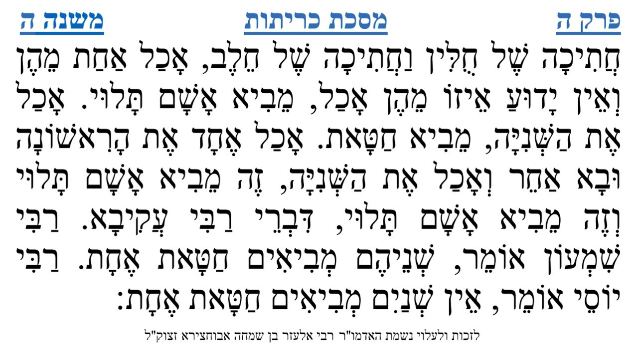 צפייה ישירה ב-YouTubeמסכת כריתות פרק ה משנה ה