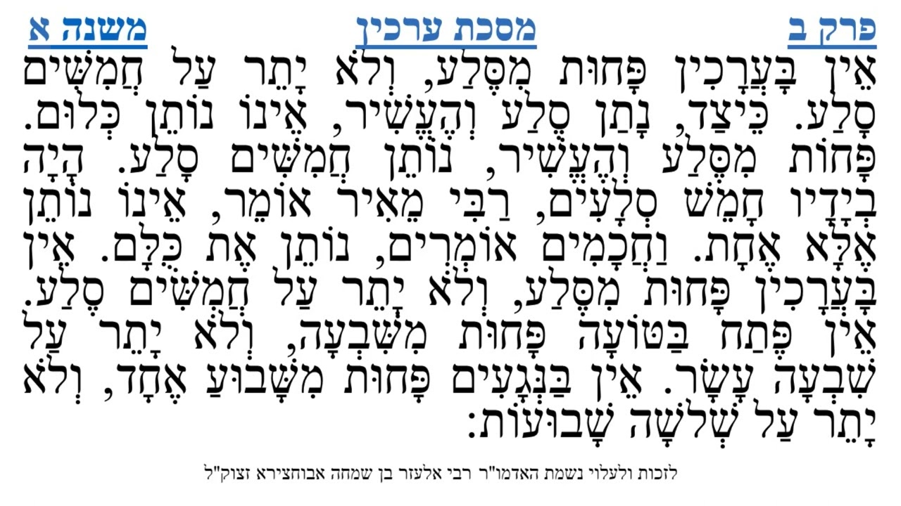 צפייה ישירה ב-YouTubeמסכת ערכין פרק ב משנה א
