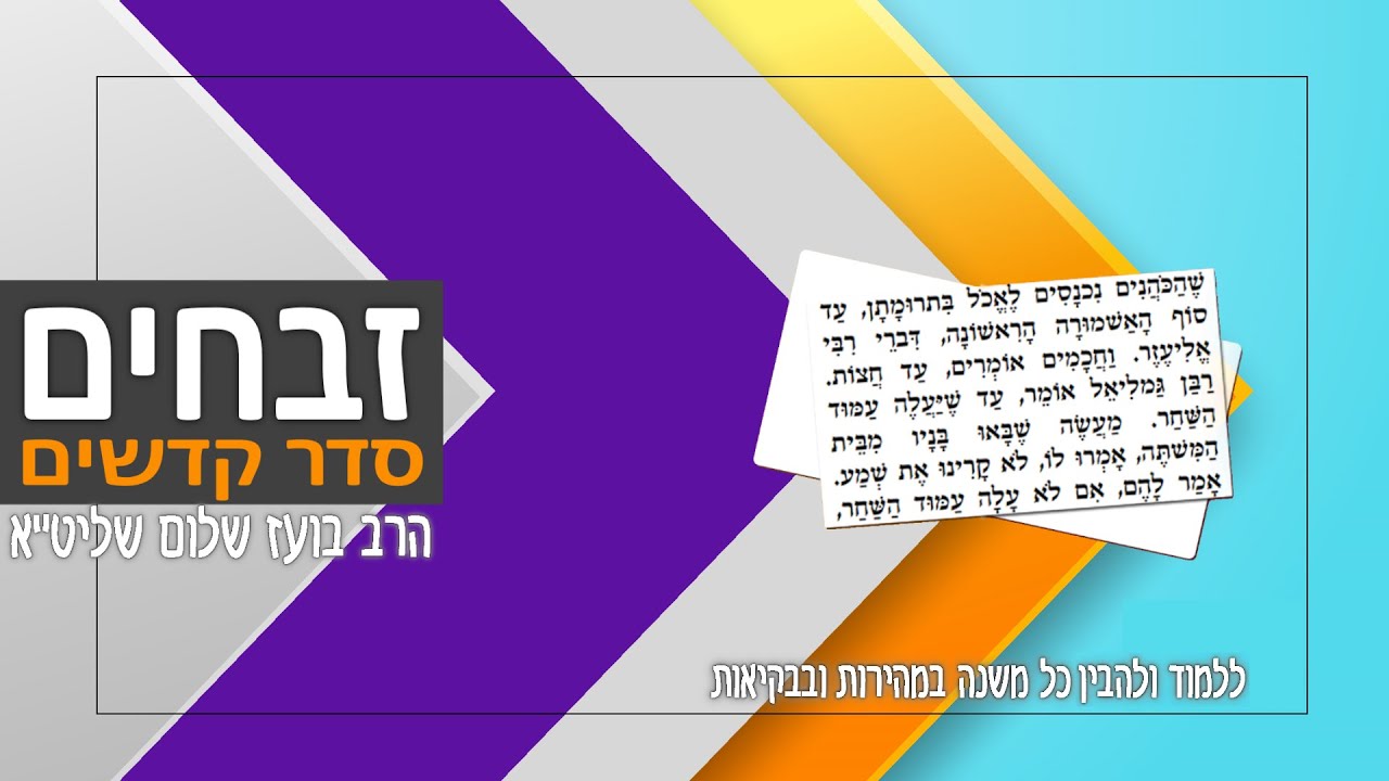 המשנה היא קובץ של פרשנויות על המקרא שתרם רבות לעיצוב היהדות וארגון החיים היהודיים לאחר חורבן הבית השני. המשנה חוברה במשך כמה דורות משלהי ימי הבית השני ובעיקר ב-150 השנים שעברו מאז חורבנו בשנת 70 לספירה. המשנה מחולקת לשישה 'סדרים', המכילים כל אחד מספר 'מסכתות'. כל מסכת עוסקת בנושא ספציפי אחד המרומז בשמה של אותה המסכת. סדרי המשנה נועדו להוות קו מנחה ובסיס איתן לשם קביעת ההלכות בקהל ישראל, לדורות. סדר זרעים – עוסק בברכות ובמצוות התלויות בארץ. מכיל 655 משניות ב-11 מסכתות. סדר מועד – עוסק בשבתות, חגים ותעניות. מכיל 681 משניות ב-12 מסכתות. סדר נשים – עוסק באישות, קידושין, גירושין וכדומה. מכיל 578 משניות ב-7 מסכתות. סדר נזיקין – עוסק בדיני ממונות וסדרי המשפט. מכיל 685 משניות ב-10 מסכתות. סדר קדשים – עוסק בבית המקדש ובקורבנות. מכיל 590 משניות ב-11 מסכתות. סדר טהרות – עוסק בסוגי טומאות וטהרתן. מכיל 1,003 משניות ב-12 מסכתות. שישה סדרי משנה סדר זרעים: ברכות, פאה, דמאי, כלאיים, שביעית, תרומות, מעשרות, מעשר שני, חלה, עורלה, ביכורים. סדר מועד: שבת, עירובין, פסחים, שקלים, יומא, סוכה, ביצה, ראש השנה, תענית, מגילה, מועד קטן, חגיגה. סדר נשים: יבמות, כתובות, נדרים, נזיר, סוטה, גיטין, קידושין. סדר נזיקין: בבא קמא, בבא מציעא, בבא בתרא, סנהדרין, מכות, שבועות, עדויות, עבודה זרה, אבות, הוריות. סדר קודשים: זבחים, מנחות, חולין, בכורות, ערכין, תמורה, כרתות, מעילה, תמיד, מידות, קינים. סדר טהרה: כלים, אוהלות, נגעים, פרה, טהרות, מקוות, נידה, מכשירין, זבים, טבול יום, ידיים, עוקצים. הרב בועז שלום שליט"א הוציא בשנים האחרונות אלפי שיעורי תורה במגוון נושאים. שיעורים מעמיקים בתנ"ך, משנה, דף היומי, מחשבה, מוסר, הלכה, אגדה, עין יעקב, אור החיים, חומש עם רש"י, כלי יקר, דרשות על פרשת שבוע, ועוד. הרב מכהן כיו"ר ארגון 'טעמו וראו', וראש מדרשת 'בית אליהו' ברחוב דב גרונר 11 בבני ברק. במשך שנים עסק הרב במסירת הרצאות ובקירוב רחוקים בארגון 'ערכים' ובערוץ 'הידברות' במגוון נושאים. כמו כן מוסר הרב שיעורים קבועים במדרשת 'פסגות' שברחוב בן ציון גליס 37 אזוה"ת סגולה בפ"ת. הרב בועז שלום חיבר שני ספרים 'משנת החלומות' ו'משנת הגלגולים'. לרב בועז שלום אתר אינטרנט בשם "טעמו וראו" שם תוכלו למצוא את כל שיעוריו בכתובת https://taamu.co.il השיעורים ניתנים לשמיעה ואף להורדה בחינם. באתר ניתן אף להעיר או לשאול על השיעורים ולקבל את תגובת הרב. זכות השיעור לעילוי נשמת אברהם בן ימנה ויעקב ויוסף בן אורה וחיים.