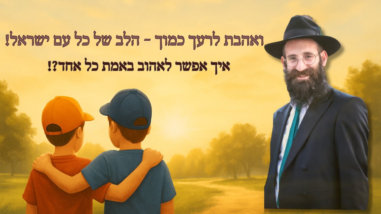 ואהבת לרעך כמוך – הלב של עם ישראל. דווקא עכשיו – כשיש מתיחות, דעות שונות וכאב – זה הזמן לבחור באהבה. 15 דקות של עומק, תקווה ואור – מפרשת השבוע. צפו ושתפו – כי אהבה אחת יכולה לשנות הרבה