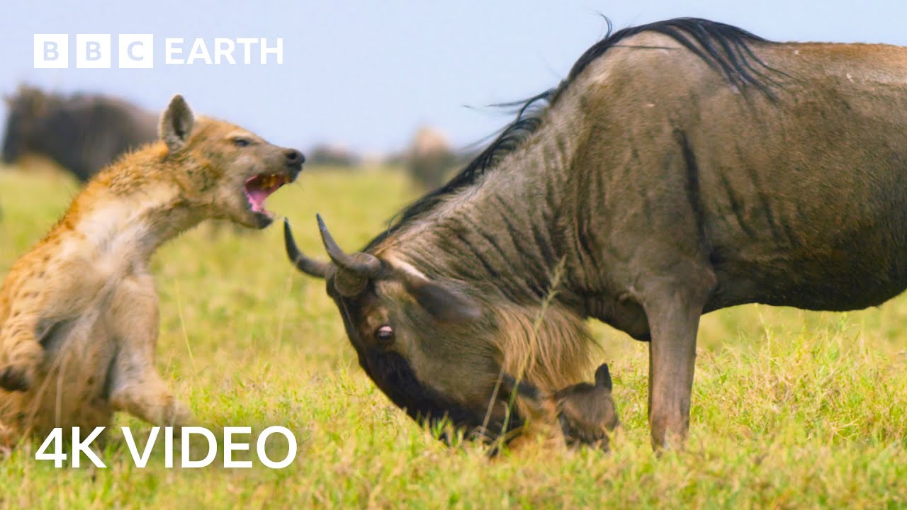 On these Serengeti plains, only one in ten wildebeest calves will survive to adulthood. However, it is enough to maintain the million-strong herd of wildebeest here and Earth's highest density of predators. Subscribe: http://bit.ly/BBCEarthSub #Wildebeest #Wildlife #Animals Watch more: Best of BBC Earth 🌍 https://bit.ly/BestOfBBCEarth Best Animal Fights 🥊 https://bit.ly/BestAnimalFights Videos over 10 minutes ⏰ https://bit.ly/3SHJCEJ Planet Earth III 🌍 https://bit.ly/PlanetEarthIIIPlaylist Frozen Planet II ❄️ https:/bit.ly/FrozenPlanetIIPlaylist Blue Planet II in 4k 🌊 https://bit.ly/BluePlanetII4kPlaylist Taken from 'A Perfect Planet' (2021) Marvel at nature's epic and powerful forces as this stunning series reveals how perfectly our planet is set up to nurture life. Welcome to BBC EARTH! The world is an amazing place full of stories, beauty and natural wonder. Here you'll find 50 years worth of entertaining and thought-provoking natural history content. Dramatic, rare, and exclusive, nature doesn't get more exciting than this. This is a commercial page from BBC Studios. Service information and feedback: http://bbcworldwide.com/vod-feedback--contact-details.aspx