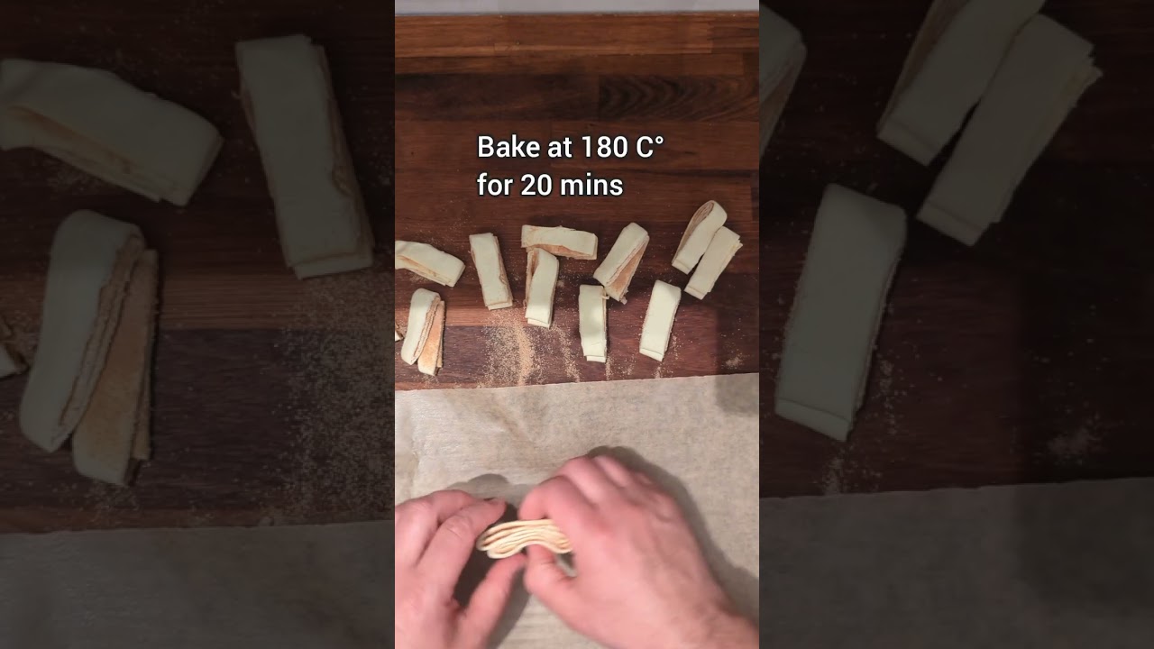 מפזרים סוכר על הבצק. מקפלים אותו כמו שהראיתי בסרטון. חותכים ואופים ב180 דרגות 20 דקות