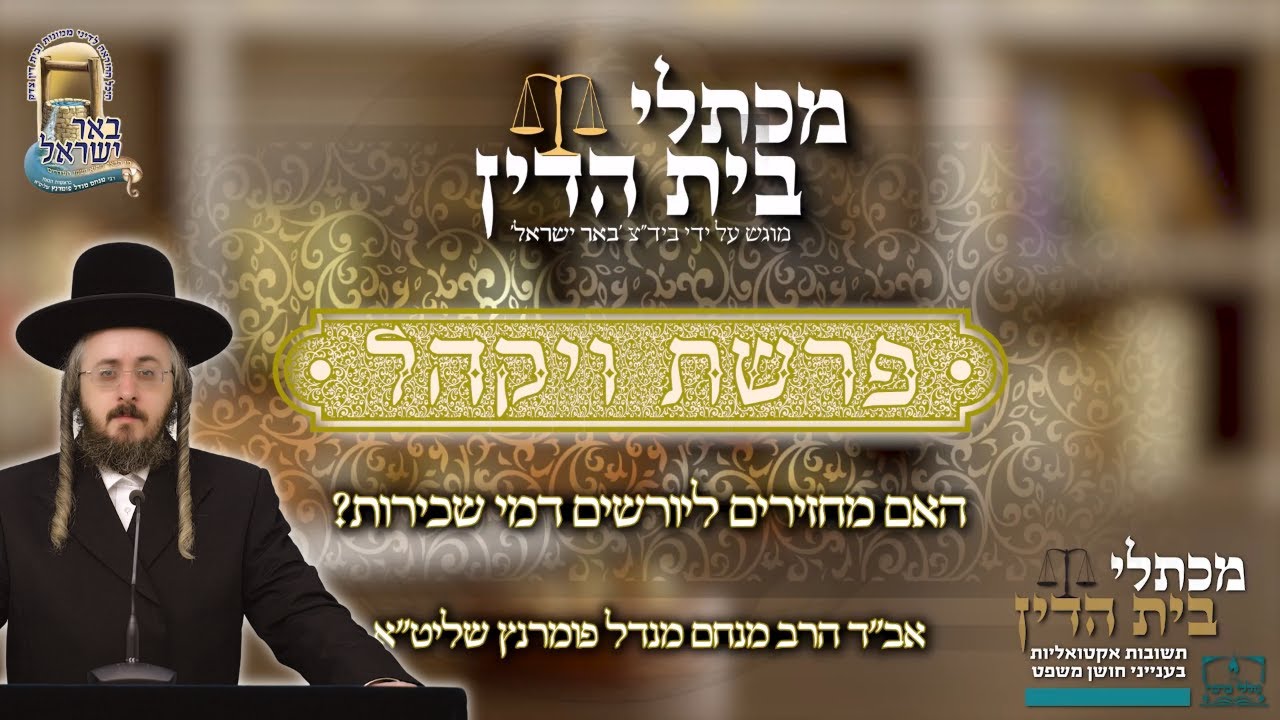 הרב מנחם מנדל פומרנץ | מכתלי בית הדין - על התורה - פרשת ויקהל • האם מחזירים ליורשים דמי שכירות •