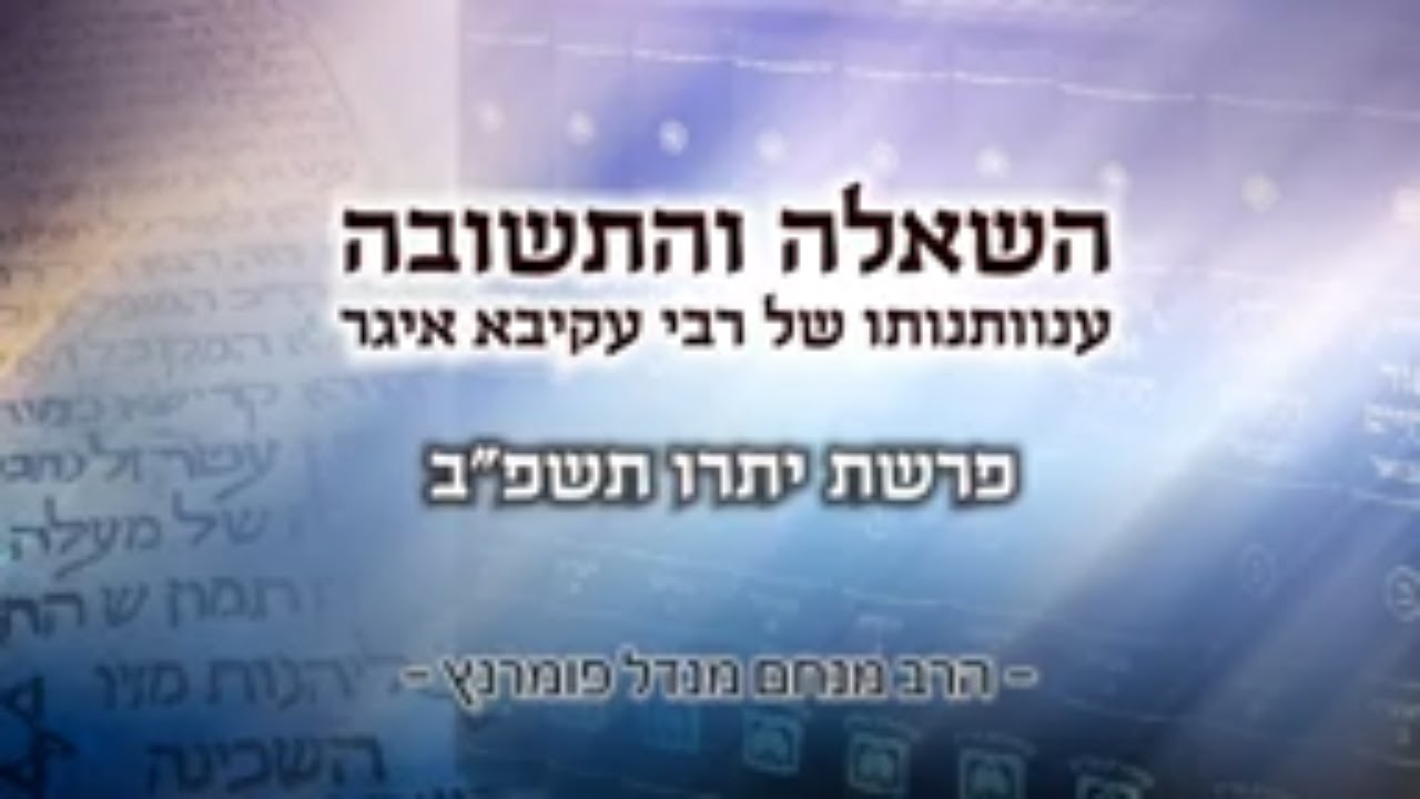 • השאלה והתשובה - ענוותנותו של רבי עקיבא איגר • הרב מנחם מנדל פומרנץ מסר אור החיים - פרשת יתרו תשפ"ב