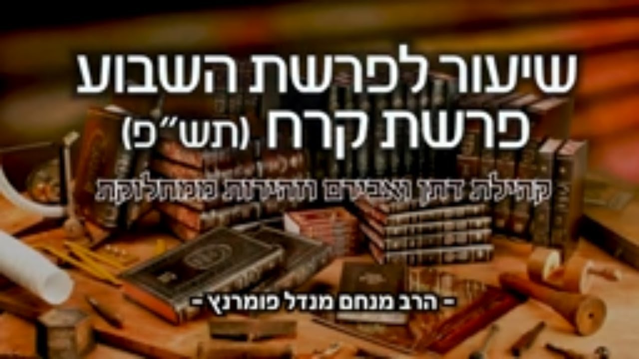 • קהילת דתן ואבירם וזהירות ממחלוקת • הרב מנחם מנדל פומרנץ שיעור לפרשת השבוע - פרשת קרח