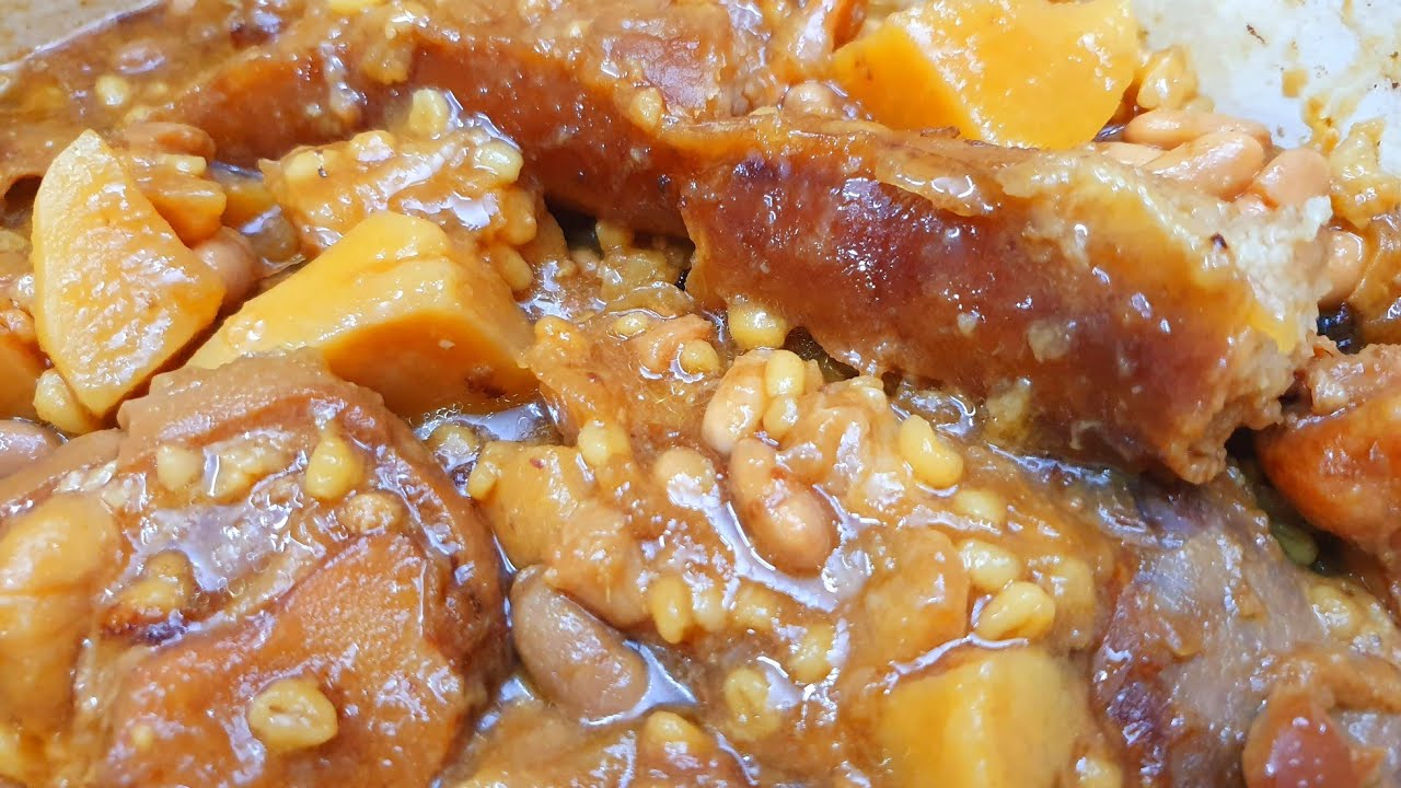 בקלי- קלות- חמין טשולנט של בני ברק עם שעועית לבנה גריסים תפוחי אדמה בקר ועוד כמה טעים ארוחה שלמה בסיר אחד @bkalykalut7 אתר לרכישת מוצרים לבית ולמטבח עשו על הקישור העתק הדבק http://s.click.aliexpress.com/e/cUi5lcbI מתכון רשום בעברית בבלוג שלי לחצו על הקישור http://kalyklot.blogspot.com/2024/11/blog-post_12.html החומרים 4 בצלים גדולים חתוכים לקוביות גדולות 2 כוסות שעועית לבנה לא מבושלת להשרות כל הלילה בקערה עם מים עד שהשעועית גודלת ולסנן 1 כוס גריסי פנינה לנקות ולשתוף להכין- לא חייבים 1 קישקא מעיים ממולאים מוכן מופשר לאפות בתנור חם 160 מעלות כחצי שעה להכין- לא חייבים 4 יחידות רגל פרה מופשרות להכין נתח בשר לבישול ארוך מופשר במשקל של 1.5- 2 קילוגרם מספר- 5 או 6 או שפונדרה ניתן להכין מבשר חתוך לקוביות לחמם סיר גדול לשים כשתי כפות שמן זית לשים את הבצל ולטגן עד הזהבה לאחר שהבצל זהוב להוסיף את עצמות הרגל ולהזהיב כארבע דקות לאחר הזהבת העצמות להוציא אותם לצלחת לשים את הבשר ולהשחים כשתי דקות מכל צד להוסיף את העצמות למלא במי ברז עד לגובה הבשר כחצי סיר ולהרתיח להוציא את הקצף שנוצר במהלך הבישול לכסות עם המכסה ולבשל על אש בינונית כשעה וחצי להכין 5 תפוחי אדמה גדולים לא מבושלים מקולפים חחוכים לקוביות גדולות לאחר כשעה וחצי להוסיף כ- 1.5 כפיות מלח מעט פלפל שחור 2 כוסות שעועית לבנה לא מבושלת ואת הגריסי הפנינה לאחר מכן להוסיף את תפוחי האדמה ואת המעיים הממולאים לכסות את הסיר עם המכסה ולבשל על אש בינונית כחצי שעה לאחר כחצי שעה בישול ניתן לשים לפני השבת על פלטת שבת עד ארוחת הצהריים ניתן גם להכין מיום חמישי לקרר בחוץ לשיפ במקרר וביום שישי לפני ששמים על הפלטה לחמם על אש קטנה ואז לשים כל הלילה על פלטת שבת