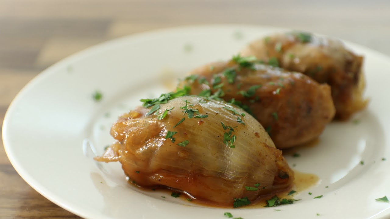 מתכון לבצלים ממולאים בבשר, אורז ועשבי תיבול ברוטב סילאן מתקתק. מתכון טעים ופשוט להכנה. מתאים לחגים, שבתות או סתם לארוחת ערב משפחתית. מתכון כתוב מלא: https://www.thecookingfoodie.co.il/recipe/%d7%91%d7%a6%d7%9c%d7%99%d7%9d-%d7%9e%d7%9e%d7%95%d7%9c%d7%90%d7%99%d7%9d מתכונים נוספים: עלי גפן ממולאים: http://bit.ly/2vaxSQp לחמניותבמילוי בשר: http://bit.ly/2mOwmzt בורקס בשר: http://bit.ly/2LIYWgZ חומוס ביתי: http://bit.ly/2LI2DXe הצטרפו אליי: אינסטגרם: https://www.instagram.com/thecookingfoodie/ פייסבוק: https://www.facebook.com/thecookingfoodie/ הערוץ שלי באנגלית: https://www.youtube.com/c/thecookingfoodie/ מרכיבים: 4 בצלים גדולים 500 גרם בשר טחון 100 גרם אורז ¼ צרור פטרוזיליה ¼ צרור עלי נענע 1 כפית מלח 1/2 כפית פלפל שחור 1/2 כפית פפריקה 1/2 כפית בהרט שום כתוש, 2 שיניים 2 כפות שמן זית (אופציונלי) לרוטב: 1.5-2 כוסות ציר עוף/בקר 1.5/2 כוסות מים 1-2 כפות סילאן (תלוי במתיקות שאתם רוצים) 1 עלה דפנה 1 מקל קינמון הוראות הכנה: 1. ממלאים סיר גדול במים ומביאים לרתיחה. מקלפים את הבצלים וחותכים את הקצוות. עושים חתך בכל בצל לאורכו, החתך צריך להיג בדיוק עד למרכז הבצל. מבשלים את הבצלים 15 דקות במים הרותחים, מוציאים מהמים ומצננים. ברגע שהתקרר מקלפים את שכבות הבצל. 2. קוצצים גס את הפטרוזיליה, הנענע ואת לבבות הבצל (בחלק הפנימי שנשאר לאחר קילוף השכבות). 3. בקערה גדולה מערבבים, בשר, אורז פטרוזיליה קצוצה, נענע קצוצה, לבבות בצל, תבלינים, שום כתוש ושמן זית (רק אם הבשר מאוד רזה). 4. מניחים 1-2 כפות (תלוי בגודל הבצל) בתוך שכבת בצל, ומגלגלים. 5. אל סיר רחב שופכים ציר ומים, מוסיפים סילאן, עלה דפנה ומקל קינמון. מסדרים את כל הבצלים הממולאים כך שהחתך יהיה מופנה כלפי מטה. הנוזל צריך לכסות את שכבת הבצלים, אם לא מכסה תוסיפו מעט מים או ציר. מביאים לרתיחה, מנמיכים את האש, מכסים את הסיר ונותנים להתבשל כשעה.