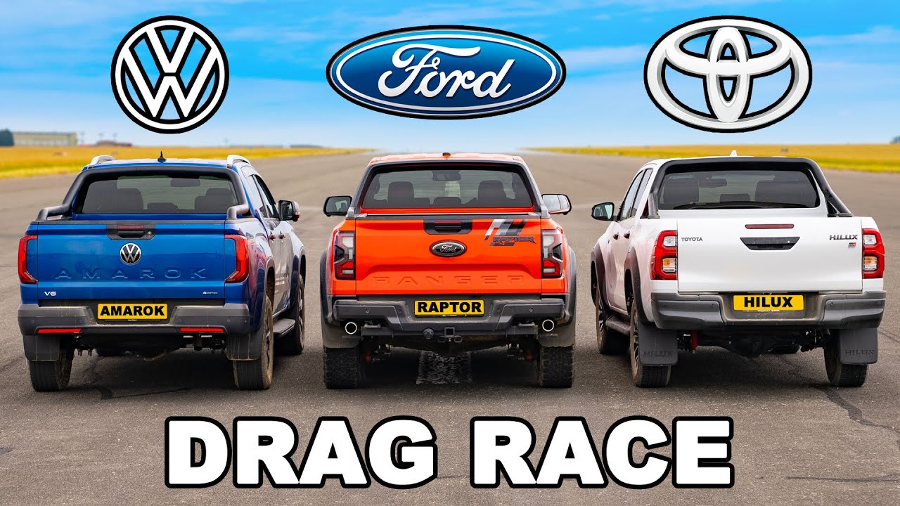Ford Raptor v GR Toyota Hilux v VW Amarok: DRAG RACE