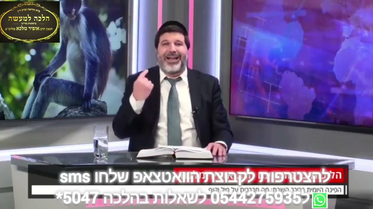 הצטרפו לערוץ שלנו ביוטיוב https://youtube.com/channelUCiT6KgOE1IDJ2XHE23Zk2Cg הצטרפו לשיעורי הרב אופיר מלכא בכול הארץ... ימים ראשון שני ושלישי: ירושלים ישיבת אור החיים 19:50 רחוב עזרא 1 ימי רביעי: 20:45 רחובות בי"הכ יד לשבים רח' שוסיוב 5. 22:10 בני ברק בי"הכ יביע אומר רח' עוזיאל 41 ימי חמישי : 17:45 ירושלים כולל בקרית נוער בית וגן שער 9 יום שישי:(פעם בשבועיים ) קרית אונו מאחורי הקניון בשעה 11:00 קרית גת ביה"כ אור החיים ענתות 3 11:00 אשדוד ביה"כ החיד"א 12:30 שבת: לאחר תפילת שחרית ירושלים בית הכנסת שערי ניסים רחוב שאול המלך 40 מענה הלכתי על ידי הרב שליט"א מדי יום שני בין 17:00-18:45 5047* שלוחה 1 כול יום רביעי בשידור חי שיעורו של הרב אופיר מלכא מיביע אומר בשעה 22:15 !!! קישורים 📲 לצפיה בשידור חי בקול הלשון https://www.kolhalashon.com/New/Live/LiveShiurimTree.aspx?RavID=1810&ShowVideo=True 📲לצפיה בשידור חי ביוטיוב https://www.youtube.com/@הרב.אופיר.מלכא.הלכה.למעשה 📲לצפיה ביוטיוב בטלפון הכשר בחרו מס 71 http://wiki.netfree.link/wiki/ערוצים_ביוטיוב_הפתוחים_בנטפרי