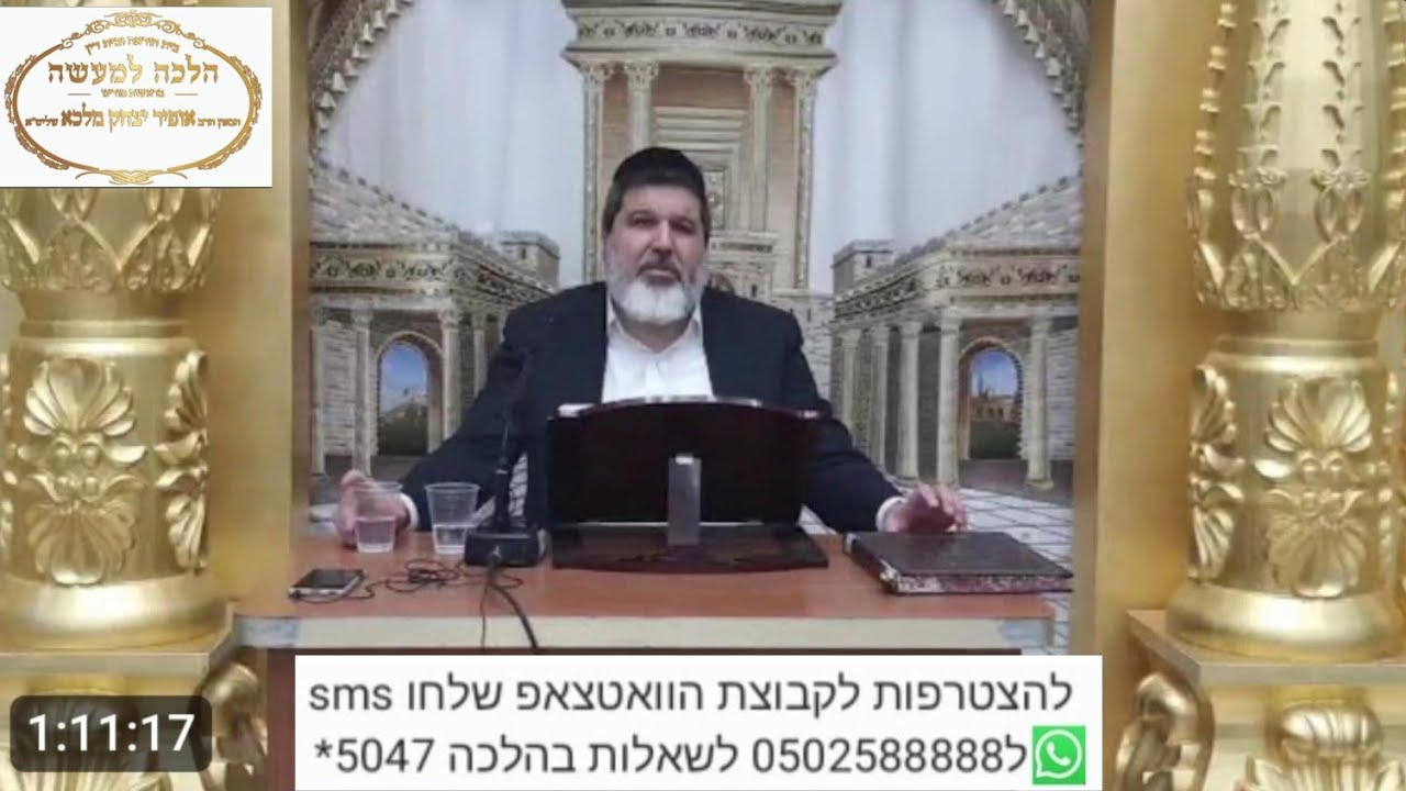 הצטרפו לערוץ שלנו ביוטיוב https://youtube.com/channelUCiT6KgOE1IDJ2XHE23Zk2Cg הצטרפו לשיעורי הרב אופיר מלכא בכול הארץ... ימים ראשון שני ושלישי: ירושלים ישיבת אור החיים 19:50 רחוב עזרא 1 ימי רביעי: 20:30 ברחבי הארץ פרסום בהתאם 22:10 בני ברק בי"הכ יביע אומר רח' עוזיאל 41 ימי חמישי : 17:45 ירושלים כולל בקרית נוער בית וגן שער 9 יום שישי:(פעם בשבועיים ) קרית אונו מאחורי הקניון בשעה 11:00 קרית גת ביה"כ אור החיים ענתות 3 11:00 כל שבוע אשדוד ביה"כ החיד"א 12:30 שבת: לאחר תפילת שחרית ירושלים בית הכנסת שערי ניסים רחוב שאול המלך 40 מענה הלכתי על ידי הרב שליט"א מדי יום שני בין 17:00-18:30 5047* שלוחה 1 כל יום רביעי בשידור חי שיעורו של הרב אופיר מלכא מיביע אומר בשעה 22:15 !!! קישורים 📲 לצפיה בשידור חי בקול הלשון https://www.kolhalashon.com/New/Live/LiveShiurimTree.aspx?RavID=1810&ShowVideo=True 📲לצפיה בשידור חי ביוטיוב https://www.youtube.com/@user-td5hq9zj1x 📲לצפיה ביוטיוב בטלפון הכשר בחרו מס 71 http://wiki.netfree.link/wiki/ערוצים_ביוטיוב_הפתוחים_בנטפרי