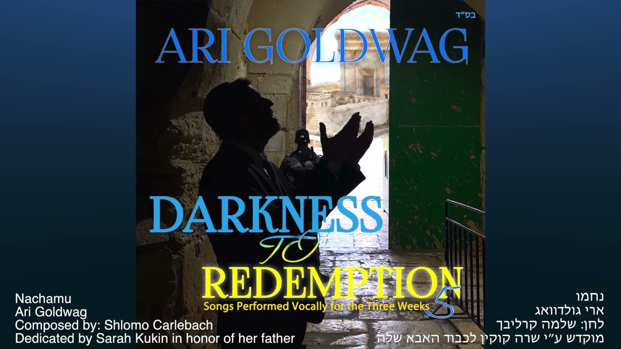 Darkness to Redemption 5 Nachamu Performed by Ari Goldwag Composed by Shlomo Carlebach Dedicated by Sarah Kukin in honor of her father Lyrics: So Shabbos Va’eschanan Two thousand four hundred or five hundred years ago Yeshaya Hanavi Listened to the Parsha Va’eschanan And he came down to the streets And he propesied and he said נחמו נחמו עמי יאמר אלוקיכם דברו על לב ירושלים וקראו אליה You know sweetest friends Sometimes a person is so desperate for consolation Sometimes a person is so desperate for one good word That when you want to give it to them they run away Can you imagine Moshiach would walk in right now Most of us would just run through the window - Couldn’t believe it. I want it so much - I can’t believe it. I can’t believe it. So he says, “Dabru al lev Yerushalayim” And when she runs away, don’t stop, “v’kir’u aile’ha” Run after her and keep on crying loud - it’s true, it’s true. Okay now I know it’s so it’s so true Sometimes you want to talk to your children, they’re crying and they run away, cuz they’re waiting for Moshiach so desperately give me harmony one more time