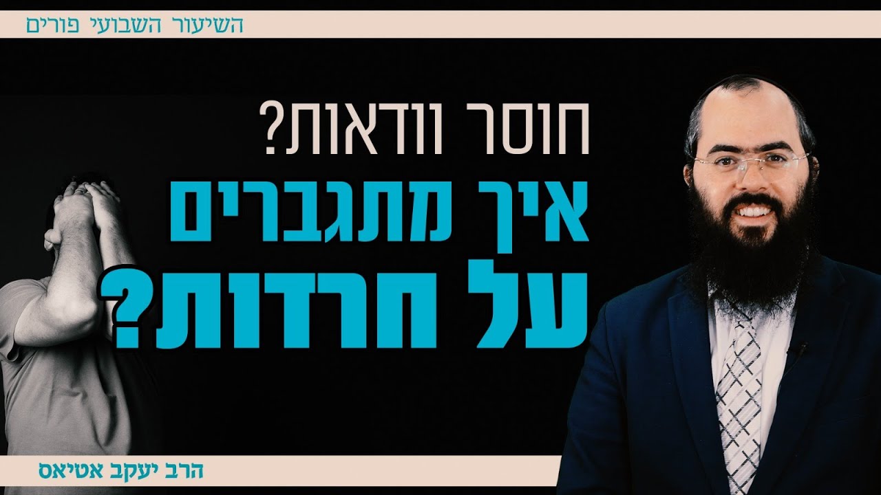 לכל אדם יש פחדים שמהם הוא חושש וחרד - אחד פוחד למות, השני מפחד להיות בודד והשלישי חושש מרעידות אדמה. אבל מאחורי כל הפחדים האלו יש פחד אחד גדול שהוא המניע לכל הפחדים שבעולם - הפחד מהלא נודע. אנחנו מקיפים את עצמנו בחומות הגנה ובונים תכניות לשנים קדימה, כדי שלא יהיה מצב בו נעמוד מול חוסר אונים. המחשה כואבת לכך קיבלנו מוירוס הקורונה אתו התמודדנו בשנים האחרונות ומרעידת האדמה שזעזעה את טורקיה לאחרונה. שני דברים לא צפויים שהכניסו את האנושות כולה להלם ולפחד מהעתיד הלוט בערפל. איך מתמודדים עם חוסר אונים? הרב יעקב אטיאס בשיעור מיוחד לחג הפורים על מצוות החג התמוהה - לשתות לשוכרה עד איבוד הראש ועל המסר המאלף הנלמד ממנה. רוצים לקבל עדכון כשהשיעור השבועי עולה? הירשמו כמנוי! • להרשמה לערוץ של הרב יעקב אטיאס ביוטיוב ◄ https://shorturl.at/agLR1 • באינסטגרם ◄ https://https://www.instagram.com/HaravAtiasY/ • בטיקטוק ◄ https://https://www.tiktok.com/@Harav_Atias • הצטרפו לקבוצת הוואטסאפ השקטה של שיעורי הרב ◄ https://chat.whatsapp.com/E5NHS1yBbTS9yNg9nJRs1Y ניתן ליצור קשר עם הרב במספר הטלפון: 0527642421 או בוואטסאפ במספר: 0543934641 #הרב_אטיאס #פורים #חרדות