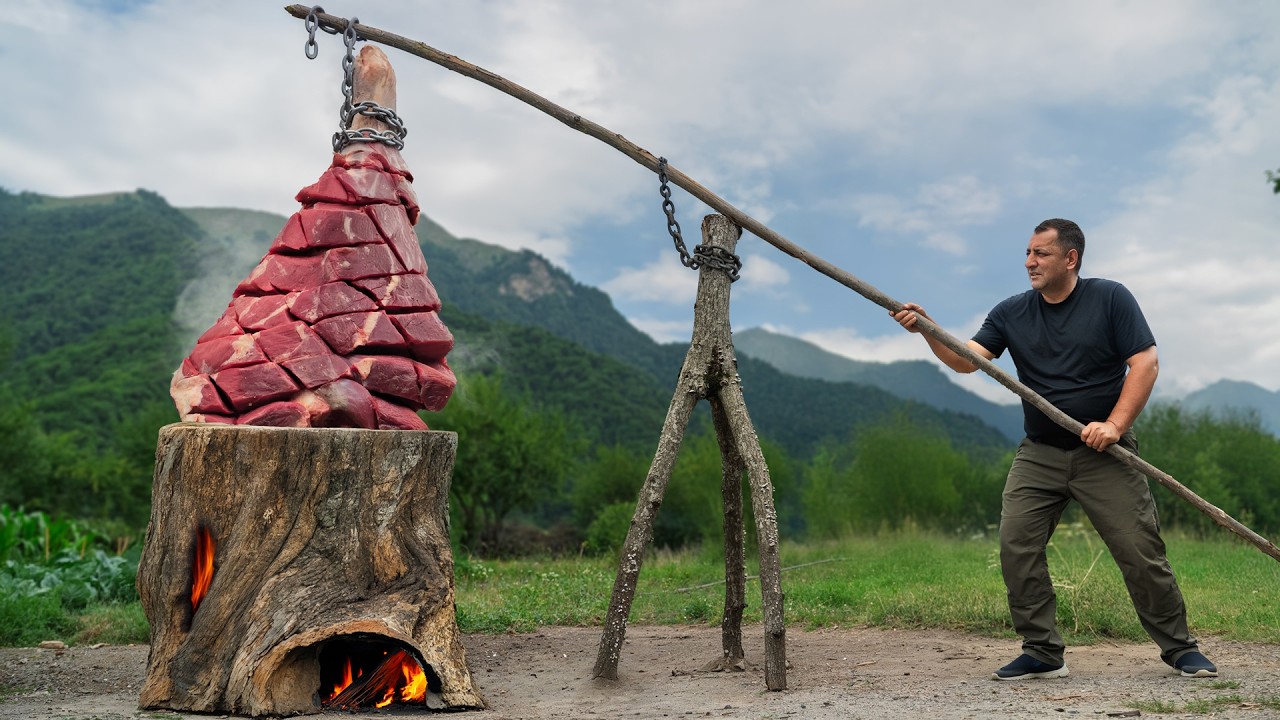 https://homewild.shop/ ๐ช - Special Knives, Delicious Food, Cookware and Stylish Clothes! Primitive cooking a whole beef leg inside a hollow log over open fire โ a traditional outdoor recipe that uses firewood, wild herbs, and plums to create deep flavor. Watch the full process: from harvesting ingredients to slow-cooking the meat in a burning tree trunk and serving it to family in a mountain village. A unique blend of ancient techniques and countryside life. 00:00 โ 03:00 Meat Preparation 03:00 โ 06:30 Log Hollowing 06:30 โ 10:30 Fruit Gathering 10:30 โ 13:30 Plum Crushing 13:30 โ 15:30 Marinating Meat 15:30 โ 18:40 Tree Trunk Smoking 18:40 โ 21:36 Family Sharing ๐ Make sure that you have the bell turned on, so you will definitely not miss any of our videos! ๐ Our other profiles: โถ Instagram: https://www.instagram.com/wilderness.cooking/ โถ Facebook: https://www.facebook.com/wildernesscooking If you want to support us: https://www.patreon.com/wildernesscooking โ ABOUT US: Wilderness Cooking channel about cooking delicious dishes in the wild. We live in a village and try to find very beautiful places to shoot. โฉ A few ultimate-delicious recipes from my channel: โผ Huge steak in a log grill: https://youtu.be/wYVNh0PG1kk โผ Giant ostrich roasted under a barrel: https://youtu.be/hlkvifwH7xI โผ Juicy beef steaks on hot stones: https://youtu.be/Arbc2WUURpk โผ Roasting a whole camel: https://youtu.be/5RlBAen7uO0 โผ Perfect Ribeye Steak cooked in a tandoor: https://youtu.be/8gs867LUtBw โผ Cooking a huge pizza underground: https://youtu.be/aPUDXBCVEfY โผ Cheese from sheep's milk: https://youtu.be/-QIoLJKyxGQ โผ Huge sturgeon with black caviar on grill: https://youtu.be/aoWaSroc19s โผ Wagyu steak cooked on a salt block: https://youtu.be/BgVBIG7u_yo โผ Cooking a huge whole ostrich: https://youtu.be/WrzFMlX1-dU โผ Huge fish cooked in a big tandoor: https://youtu.be/H-0NIFKJvSU โผ Roasting a huge bull on a steel spit: https://youtu.be/7pxqOmxPgPM #wildernesscooking #primitivecooking #firewoodcooking #slowcookedmeat #outdoorcooking