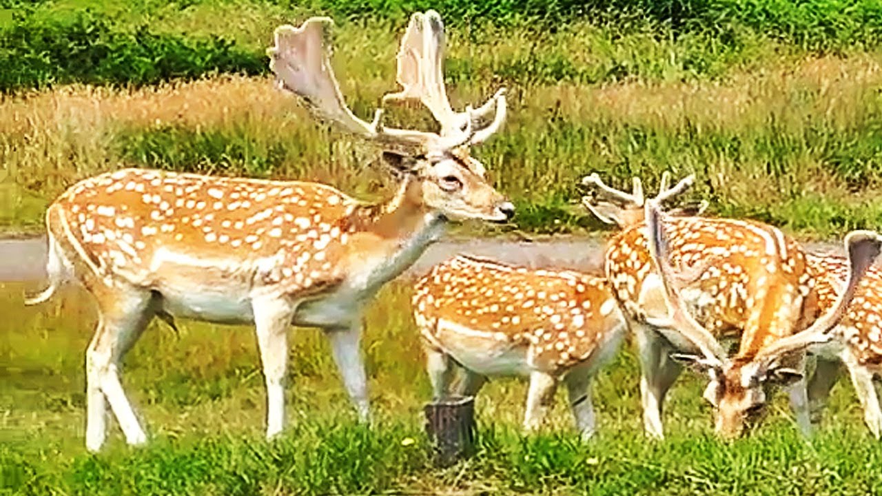 עדר איילים מסתובבים חופשי בפארק באנגליה. מחזה מדהים לראות איל. בסרטון שני סוגי איילים אייל אדמוני ויחמור אירופאי #אייל#טבע