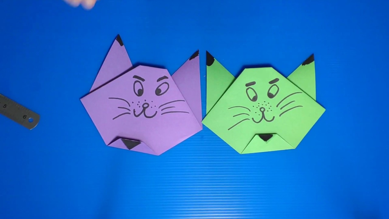 איך להכין חתול מנייר אוריגמי הכנת פנים של חתול מקיפולי נייר אוריגמי. ציירו את העיניים, האף והפה. #אוריגמי#נייר#חתול