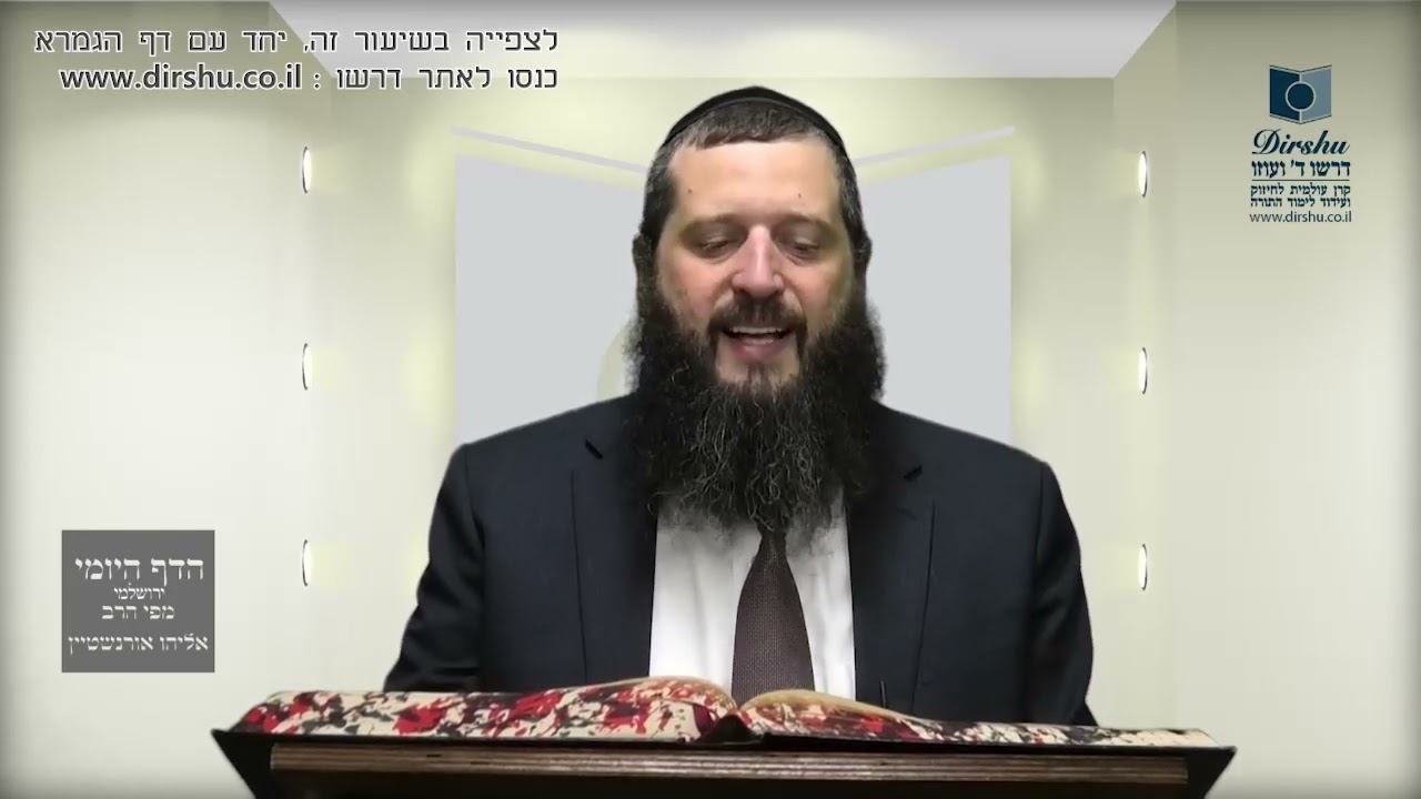 דף היומי - שיעורי הדף היומי בגמרא תלמוד ירושלמי מסכת שביעית מבית "דרשו" עם הרב אליהו אורנשטיין שליט"א, הדף יומי קצר וישיבתי לשיעורים נוספים באתר דרשו: http://www.dirshu.co.il/