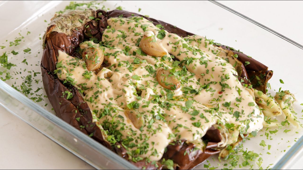 חציל שלם קלוי בטחינה