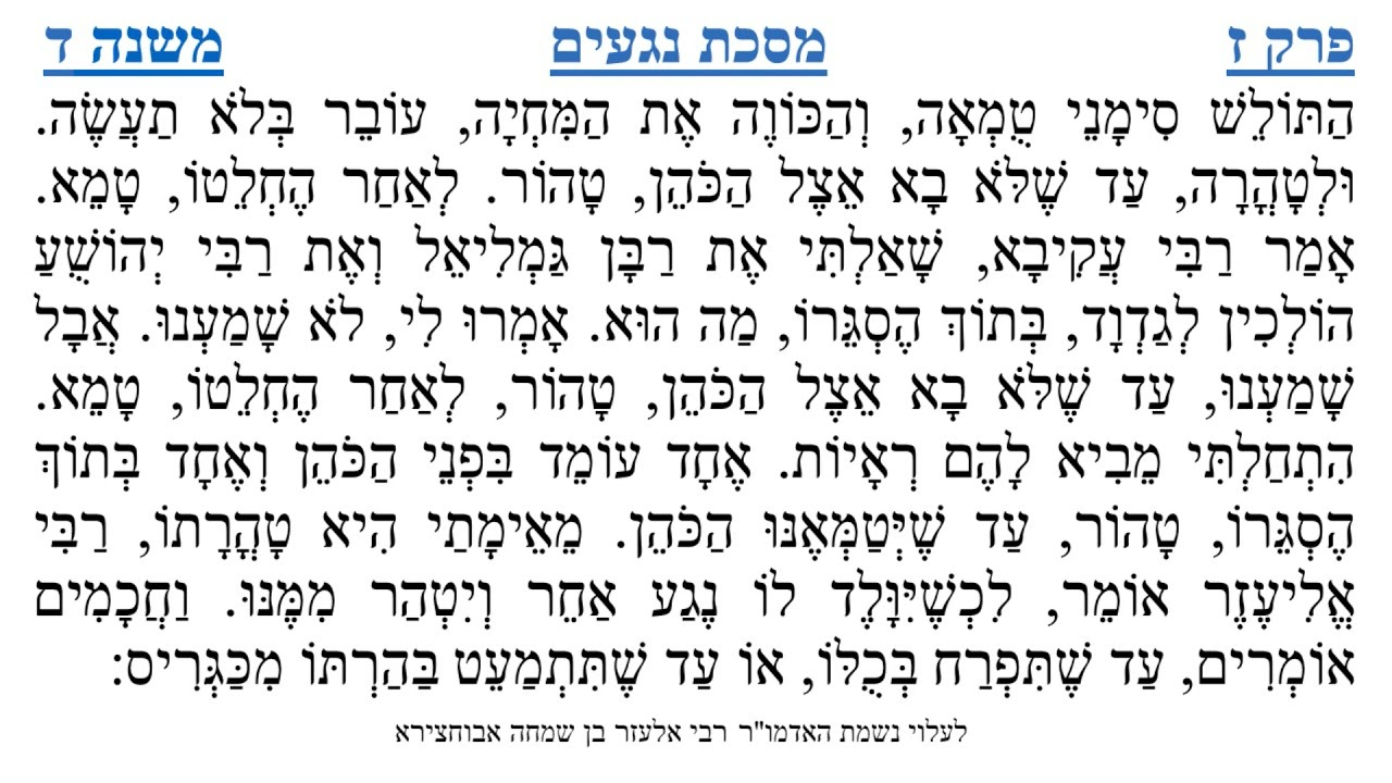 צפייה ישירה ב-YouTubeמסכת נגעים פרק ז משנה ד