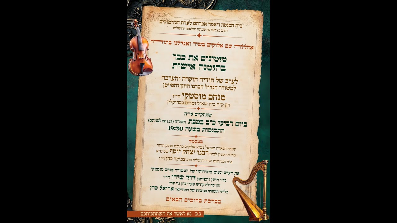 בבהכנ הג'רמוקלים חבר יקר! הירשם כמנוי לערוץ תפארת הפיוט הפעל את האפשרות 'כל ההתראות' (לחץ על הפעמן בצד שמאל) בדף הראשי תהנה ותתעדכן ממיגוון סירטונים בעולם הפיוט. לחץ על הקישור הבא.. https://www.youtube.com/user/sha91031