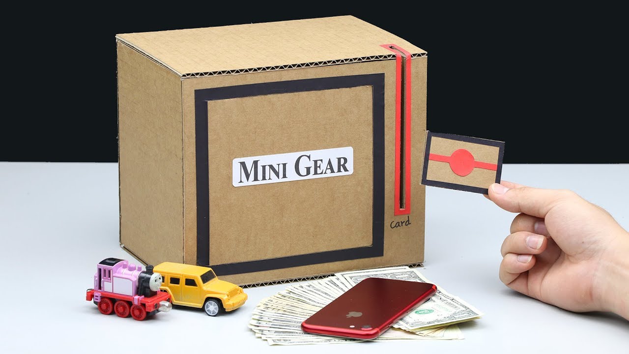 Build a safe with smart card from cardboard. You can make this safe at home. I hope you like this idea. Thank you for watching!! Please subscribe to get more interesting videos: https://www.youtube.com/channel/UCNZMEiM-ZMYmEk2CG3mr1_Q?sub_confirmation=1 You need: - Cardboard - Rubber band - Magnet - Ice-cream stick - BBQ bamboo stick and chopstick Cardboard Measurement: ===================== (cm = centimeter) 1,3cm x 3cm = 1 piece 1,3cm x 13cm = 1 piece 2,5cm x 13cm = 2 pieces 4,5cm x 7cm = 1 piece 15cm x 18cm = 3 pieces 16cm x 22cm = 2 pieces 18cm x 22cm = 2 pieces