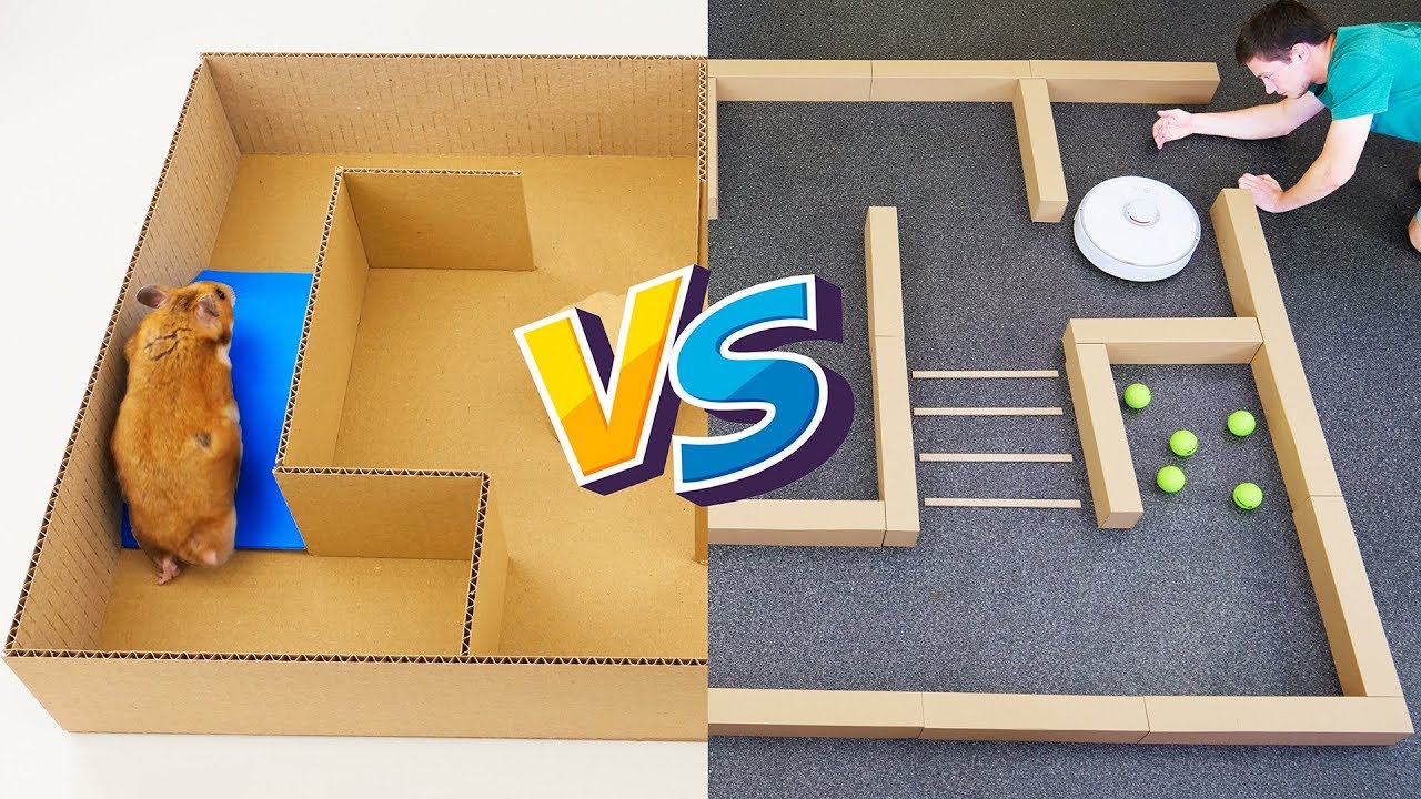 HAMSTER VS ROBOT Vacuum Cleaner in a Maze! Who is the BEST? In today's video we will find the answer who is the most advanced creature - cute litttle hamster or modern robot :) We built 2 same maze levels but different scales. It's time to find out who is the best in this challenge! If you like this video don't forget to subscribe :) Music: "Hyperfun" Kevin MacLeod. Creative Commons Attribution (https://creativecommons.org/licenses/by/4.0/). http://incompetech.com/music/royalty-free/index.html?isrc=USUAN1400038. http://incompetech.com/ Production Music courtesy of Epidemic Sound www.epidemicsound.com