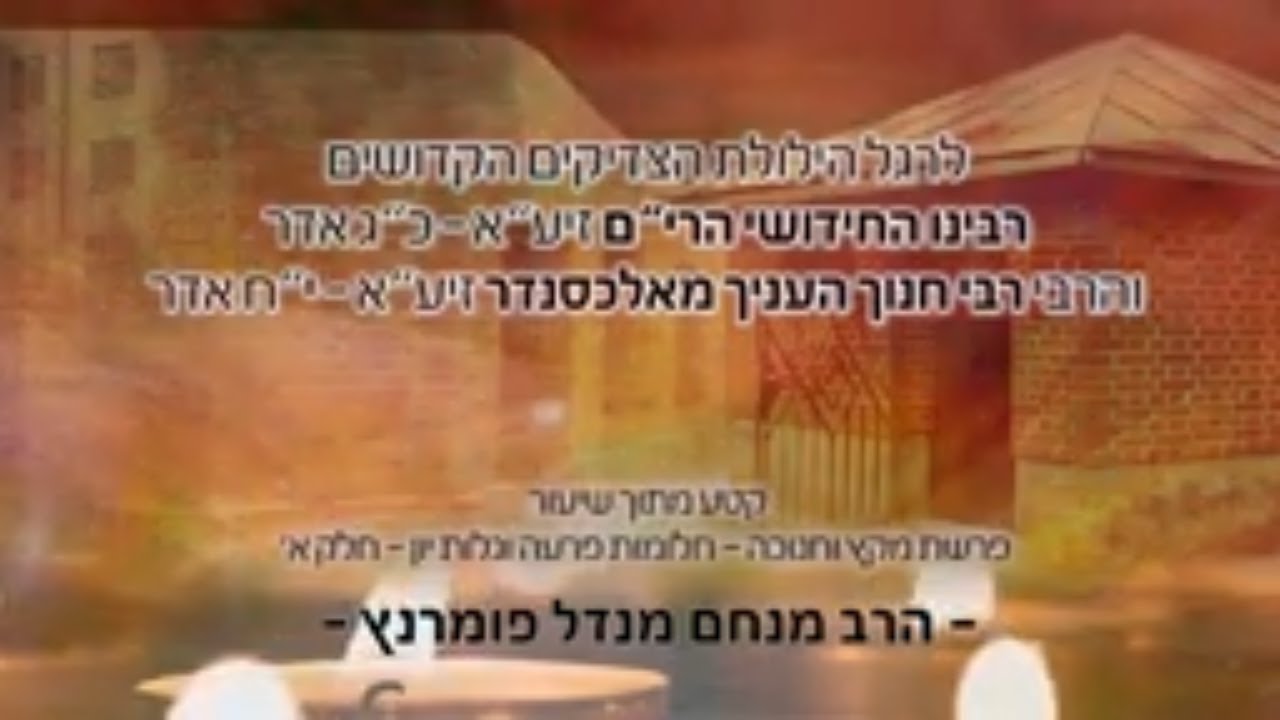 לרגל הילולת הצדיקים הקדושים רבינו החידושי הרי"ם זיע"א – כ"ג אדר, והרבי רבי חנוך העניך מאלכסנדר זיע"א – י"ח אדר. קטע מתוך שיעור לפרשת מקץ תש"פ