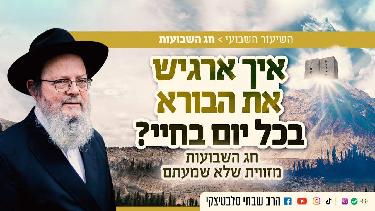 הצטרפו לקבוצת הוואטסאפ השקטה של השיעור: https://chat.whatsapp.com/BpRSoArg6Cj0RW7HOQF6N1 לפני 3336 שנים קיבלנו את התורה ובעוד ימים ספורים נחגוג שוב את היום בשמחה רבה. במבט ראשון נראה כי המחויבות הרבה שהביאה עלינו התורה מגבילה אותנו ולא מאפשרת לנו לעשות את מה שבאמת מתחשק לנו. מצוות רבות מלוות אותנו מבוקר ועד ליל, מתחילת החיים ועד סופם, ומורות לנו מה ואיך לעשות על כל צעד ושעל. איך אפשר לקיים מצוות ולהרגיש חופשי? ואיך נוכל לחוש את הבורא בתוך שגרת החיים הסוערת שלנו? הרב שבתי סלבטיצקי בשיעור מאלף לחג השבועות, מציג את החג מזווית עמוקה ומרתקת שלא הכרתם. הצטרפו לקבוצת הוואטסאפ השקטה של השיעור: https://chat.whatsapp.com/BpRSoArg6Cj0RW7HOQF6N1 רוצים לקבל עדכון כשהשיעור השבועי עולה? הירשמו כמנוי! • להרשמה לערוץ של הרב סלבטיצקי ביוטיוב ◄ https://shorturl.at/koKL4 • מוזמנים לעקוב גם בפייסבוק ◄ https://facebook.com/rabbishabtay • תכנים מתוך השיעורים עולים גם באינסטגרם ◄ https://www.instagram.com/Students_of_Rabbi_Slavaticki • ובטיקטוק ◄ https://www.tiktok.com/@talmidey_shabtai השיעור השבועי ניתן להאזנה גם באפליקציות הפודקאסטים: • אפל ◄ https://podcasts.apple.com/podcast/id1609388814?mt=2&app=podcast&ls=1 • ספוטיפיי ◄ https://open.spotify.com/show/05tVffQZJevuXZutcuYg1t • גוגל פודקאסט ◄ https://podcasts.google.com/feed/aHR0cHM6Ly9mZWVkcy5jYXB0aXZhdGUuZm0vcnNsYXZhdGl0c2t5Lw #הרב_סלבטיצקי #חג_השבועות #מתן_תורה